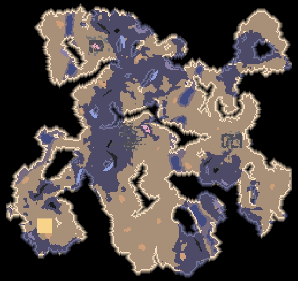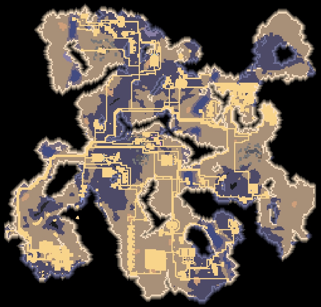 타르 벌판 미니맵. 적은 양의 토륨 광맥이 보입니다. 남색? 지형이 타르인가 봅니다.