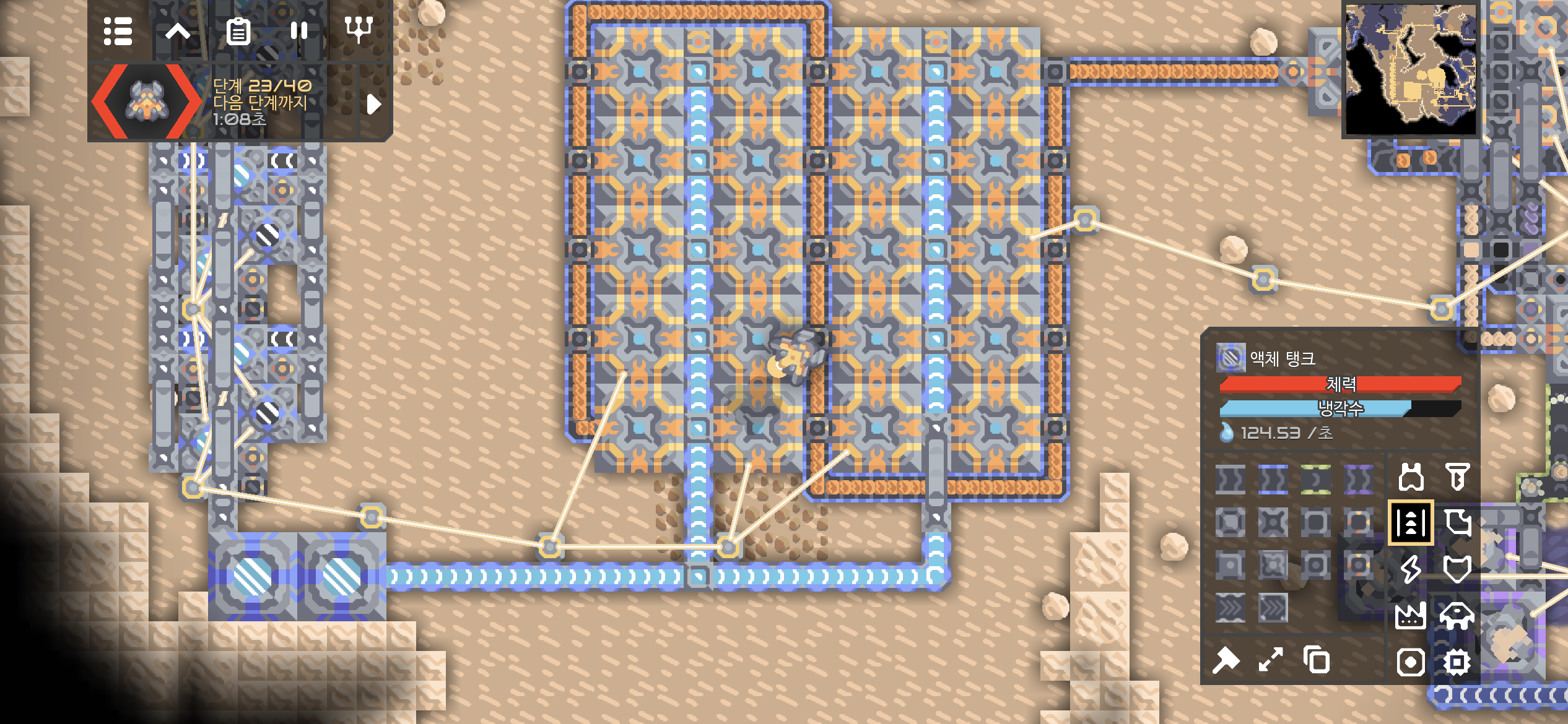 지역을 점령까지 적을 막아낸 디펜스 라인. 냉각수 탱크옆에 메가의 AI를 향상시키는 하이퍼 프로세서가 붙어있습니다.