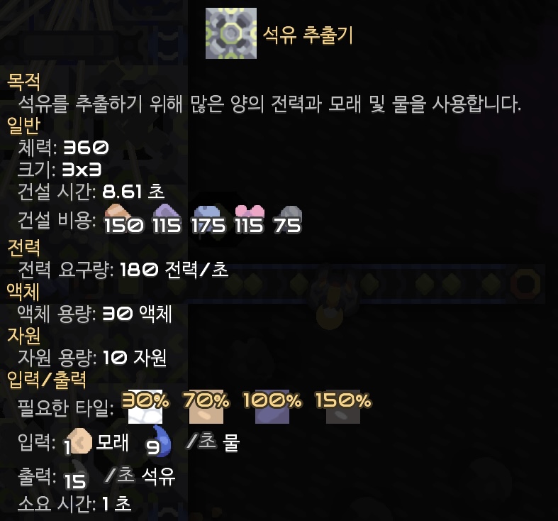 플라스터늄을 위한 석유 추출기는 기본적으론 15의 석유를 생산하는데,