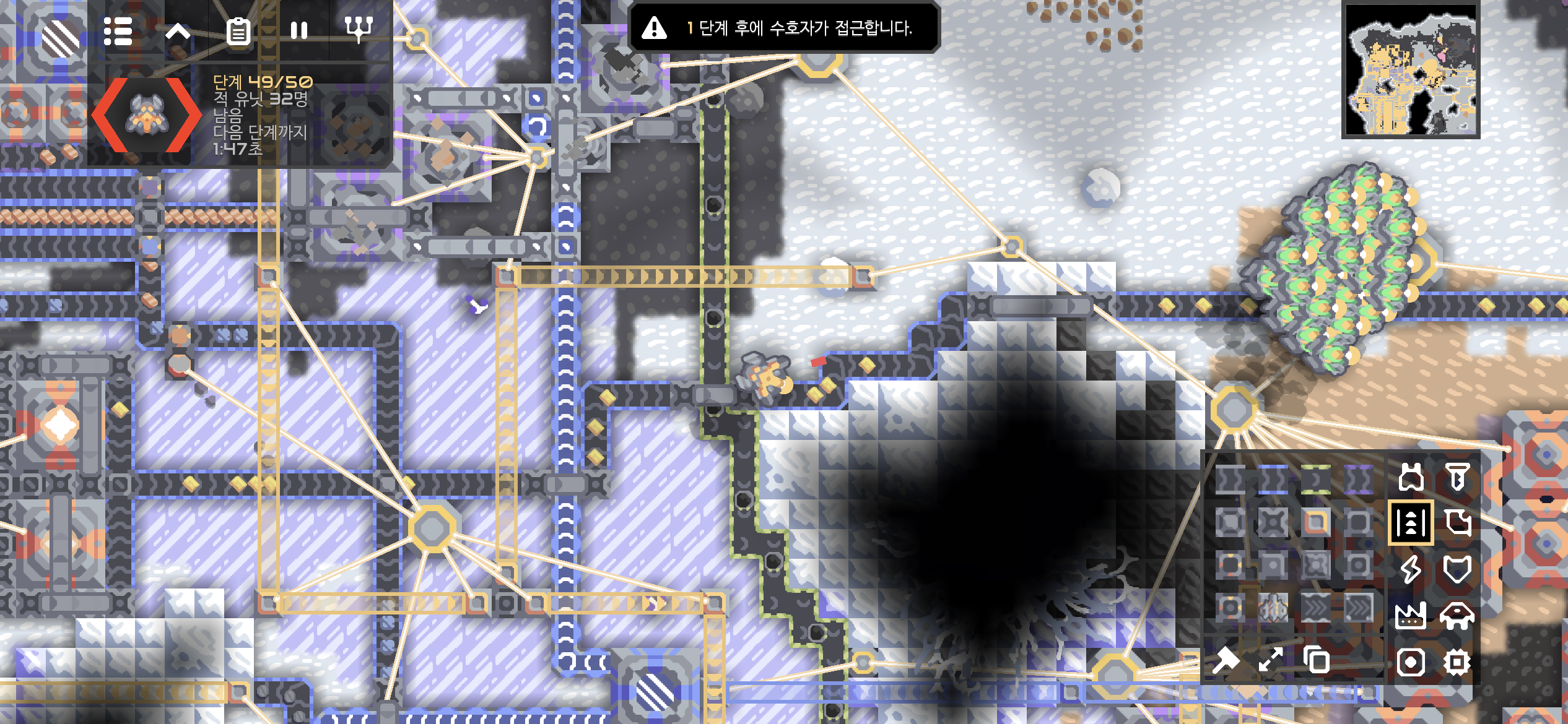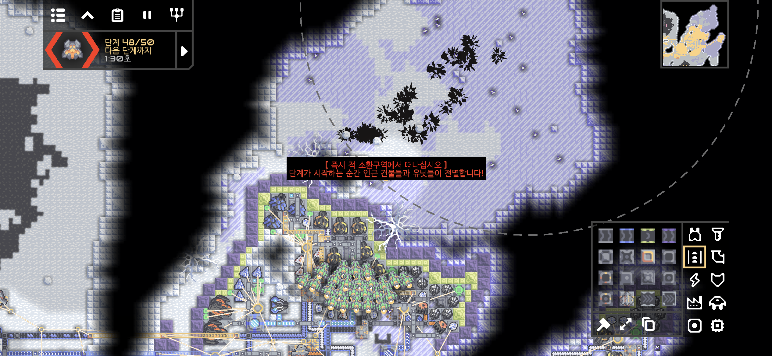 점령 후 자원 생산 건물을 증설하던 그 사이 다시 침공해오는 적.. 공격 주기가 좀 빠른듯?