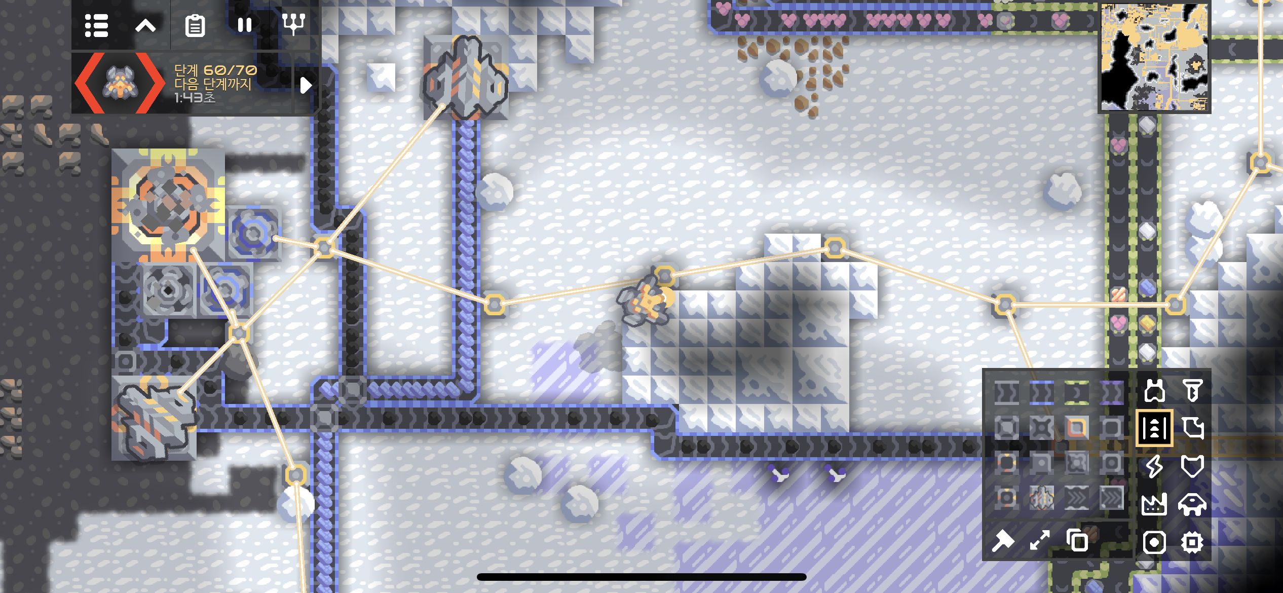단계가 진행될수록 적이 점점 강해집니다. 보호막을 가진 적 유닛은 매단계 기본으로 나오는듯 하네요. 누적 60단계까지 적을 막아내고 다시 지역에 평화가 찾아왔습니다.