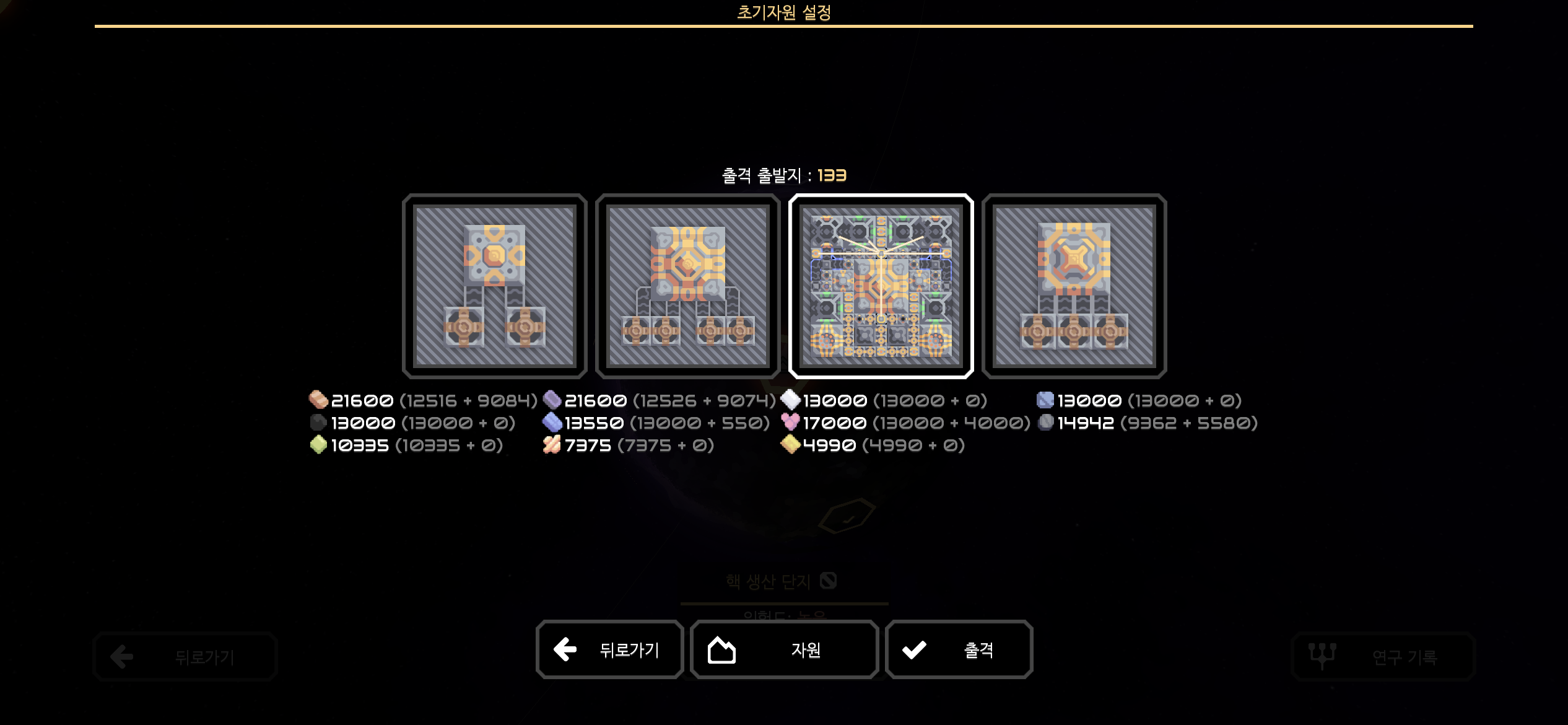 유닛 연구를 진행하느라 자원을 많이 소모했습니다. 그나마 자원이 여유로운 섹터 133에서 출격합니다.