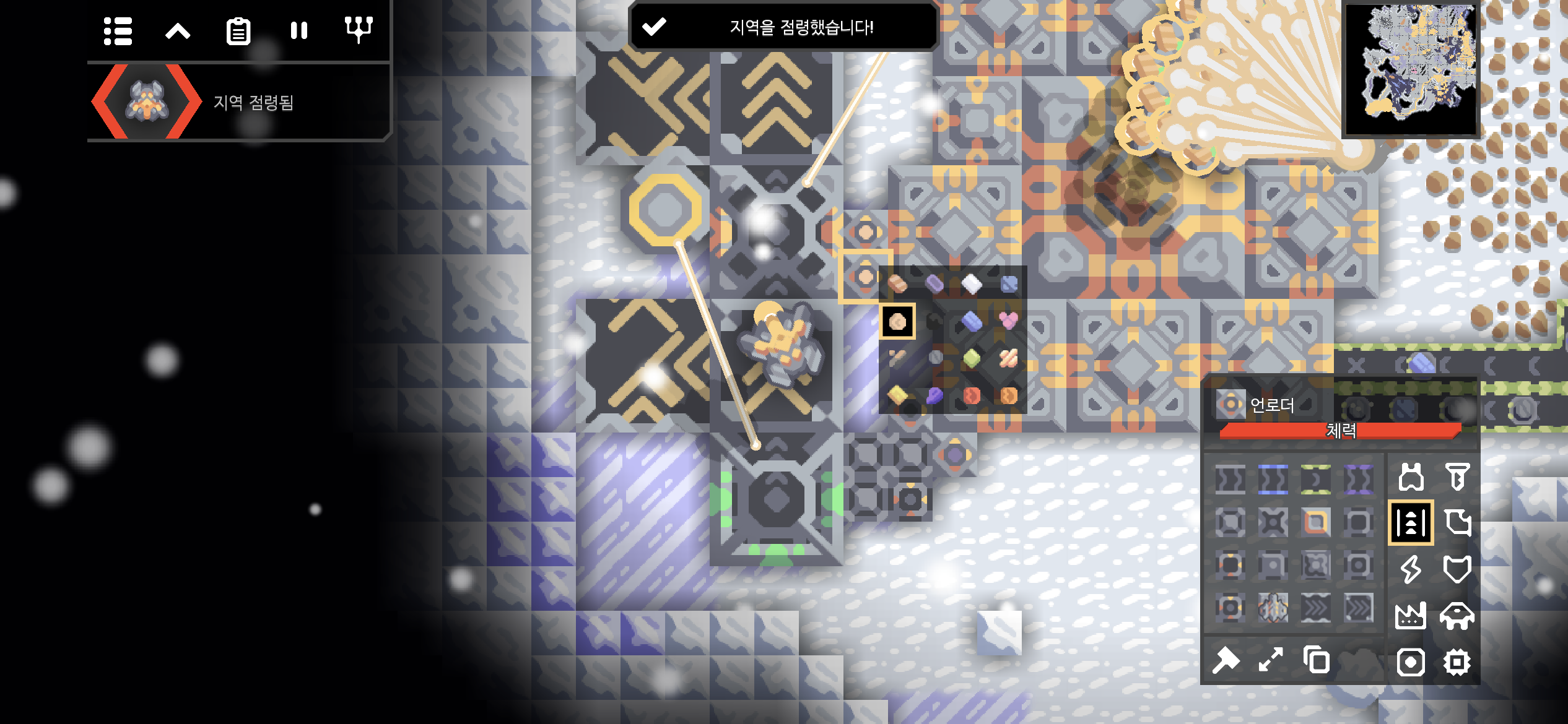 새로운 점령지역 폐허 : Impact 0078의 미니맵이 아군의 시설들로 가득 채워졌습니다.