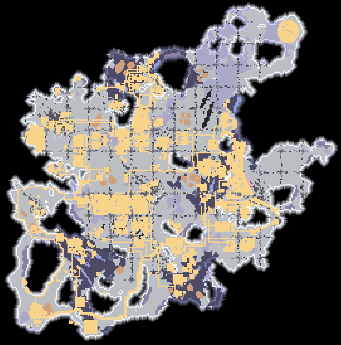 폐허 : Impact 0078 미니맵. 격자 무늬가 파괴된 우주선의 잔해인가봐요.