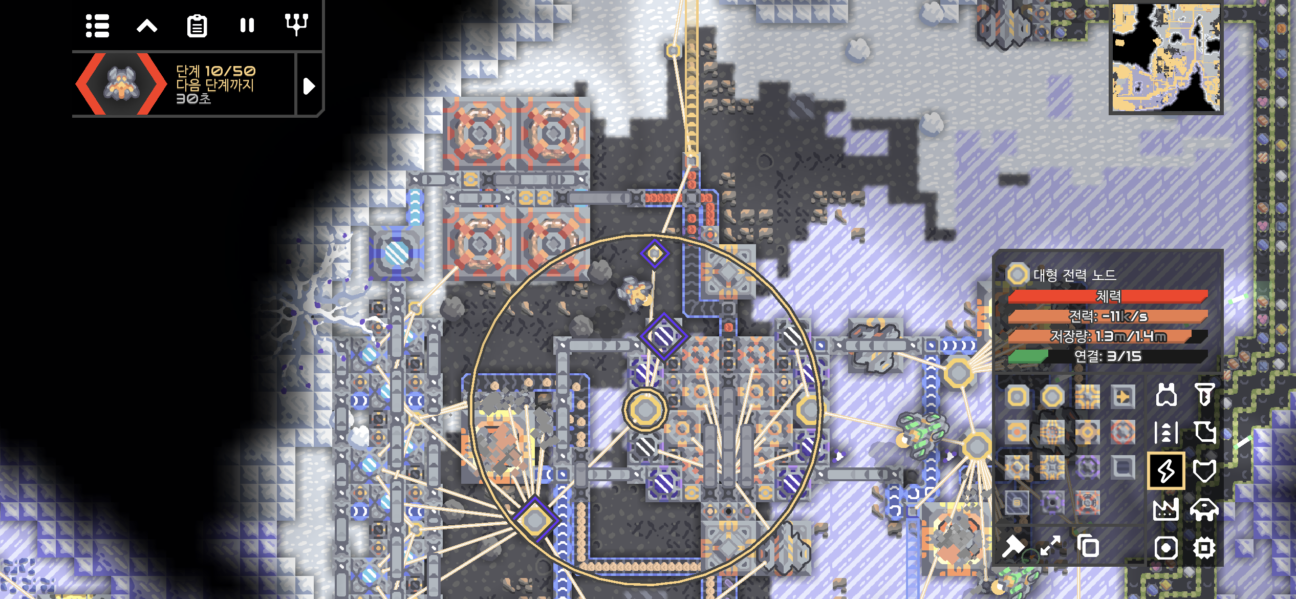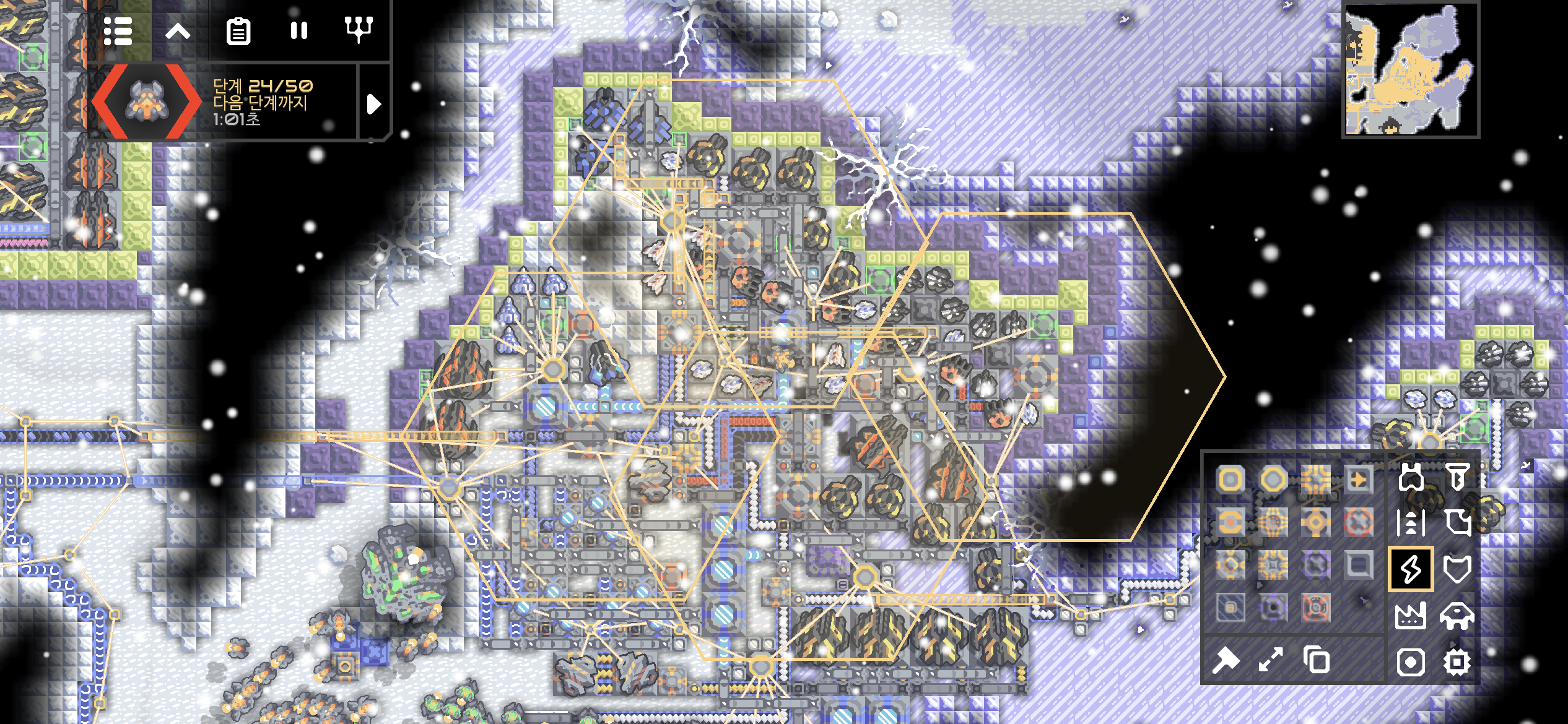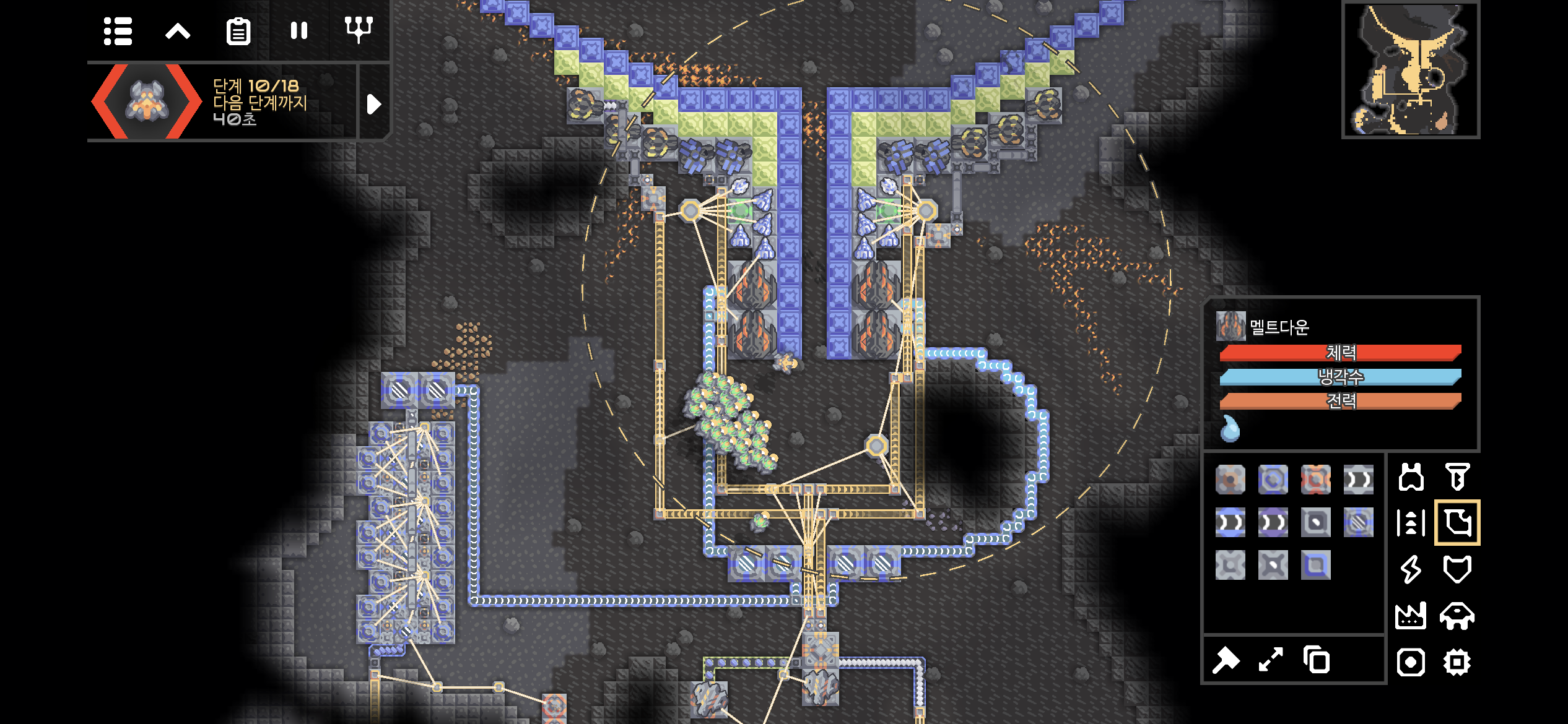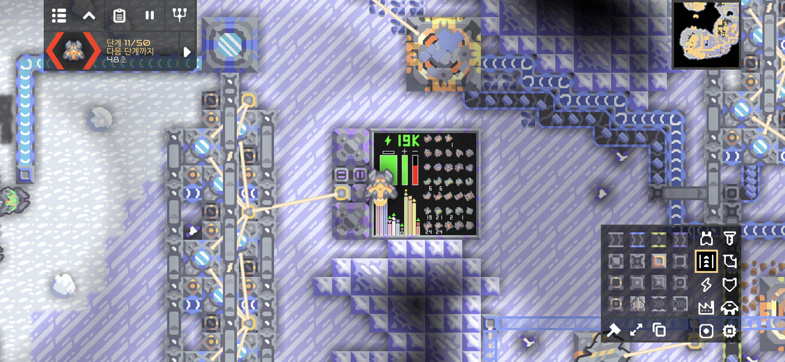 네번째 용암 지대까지 개발이 완료되니 전력이 무려 +48k/s입니다. 이정도면 또다른 발전 시설이 없어도 될듯 합니다.
