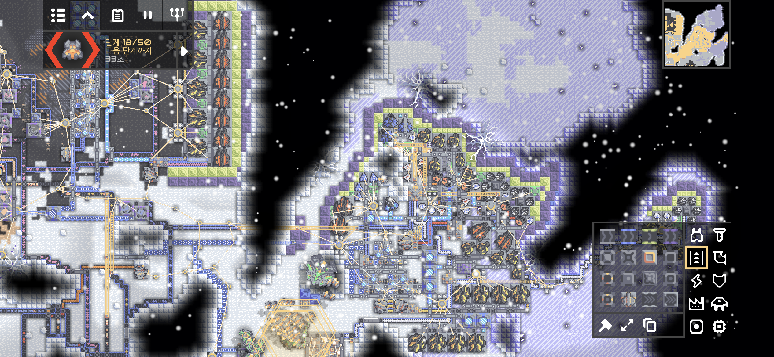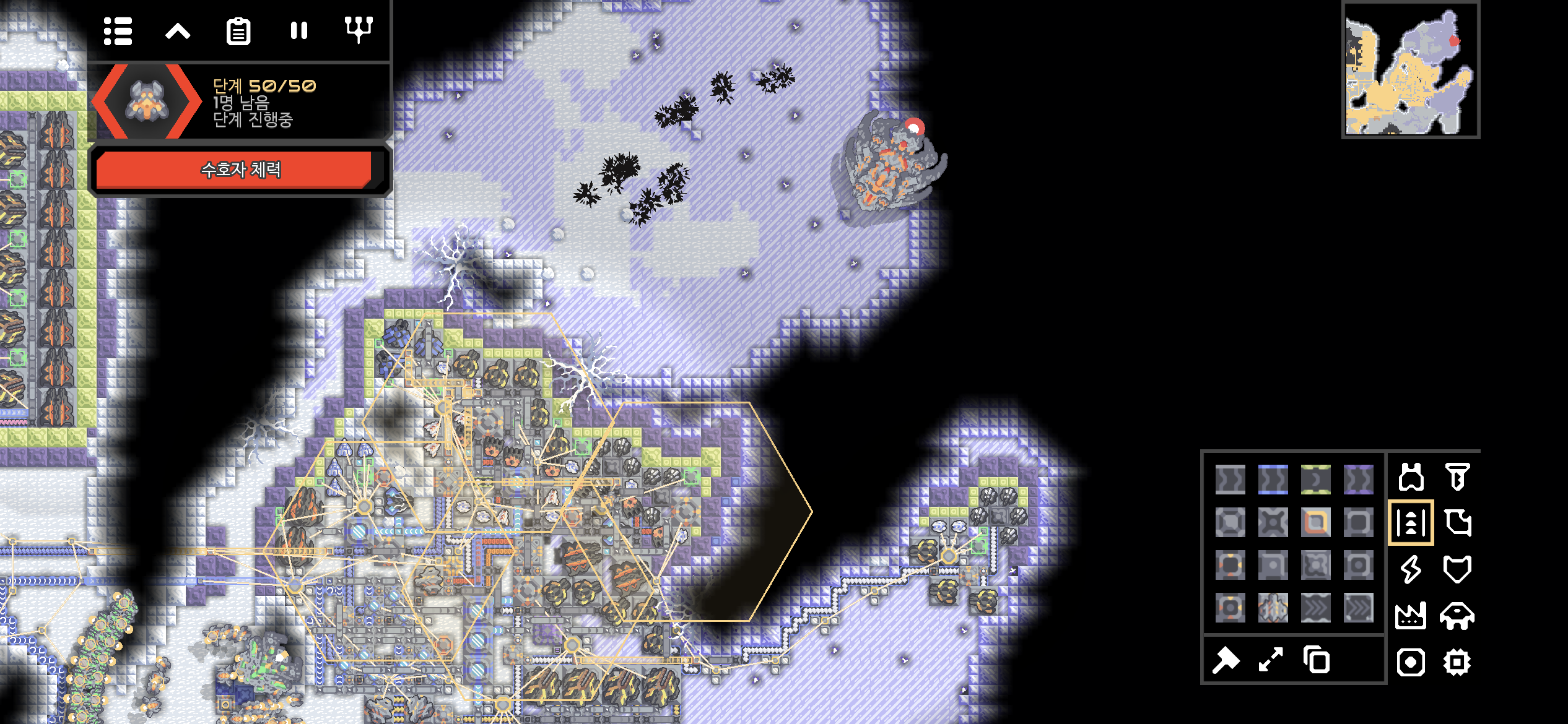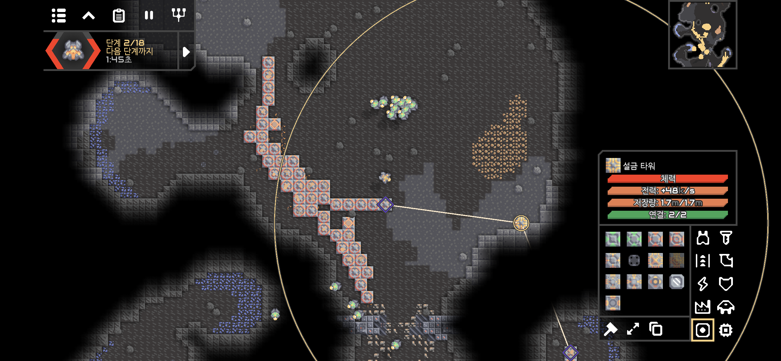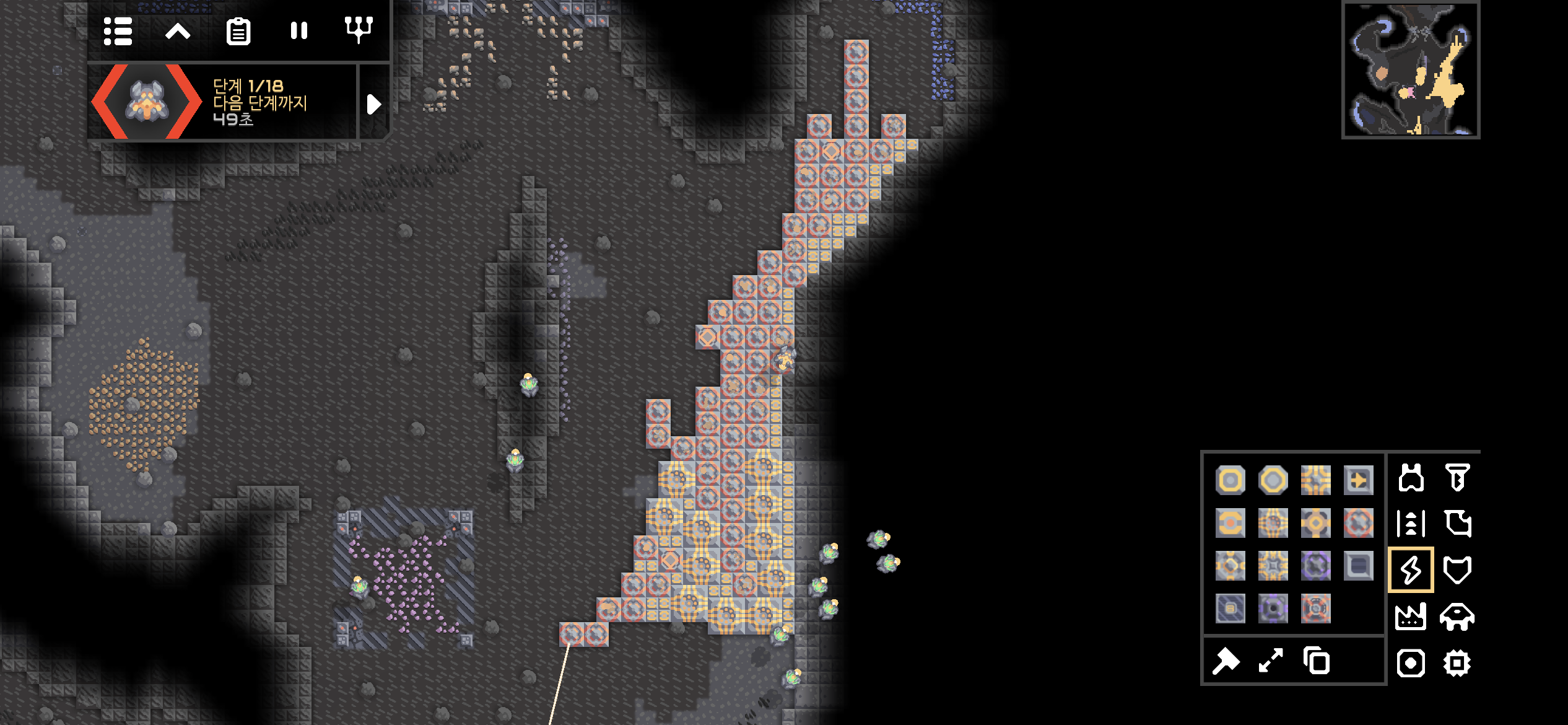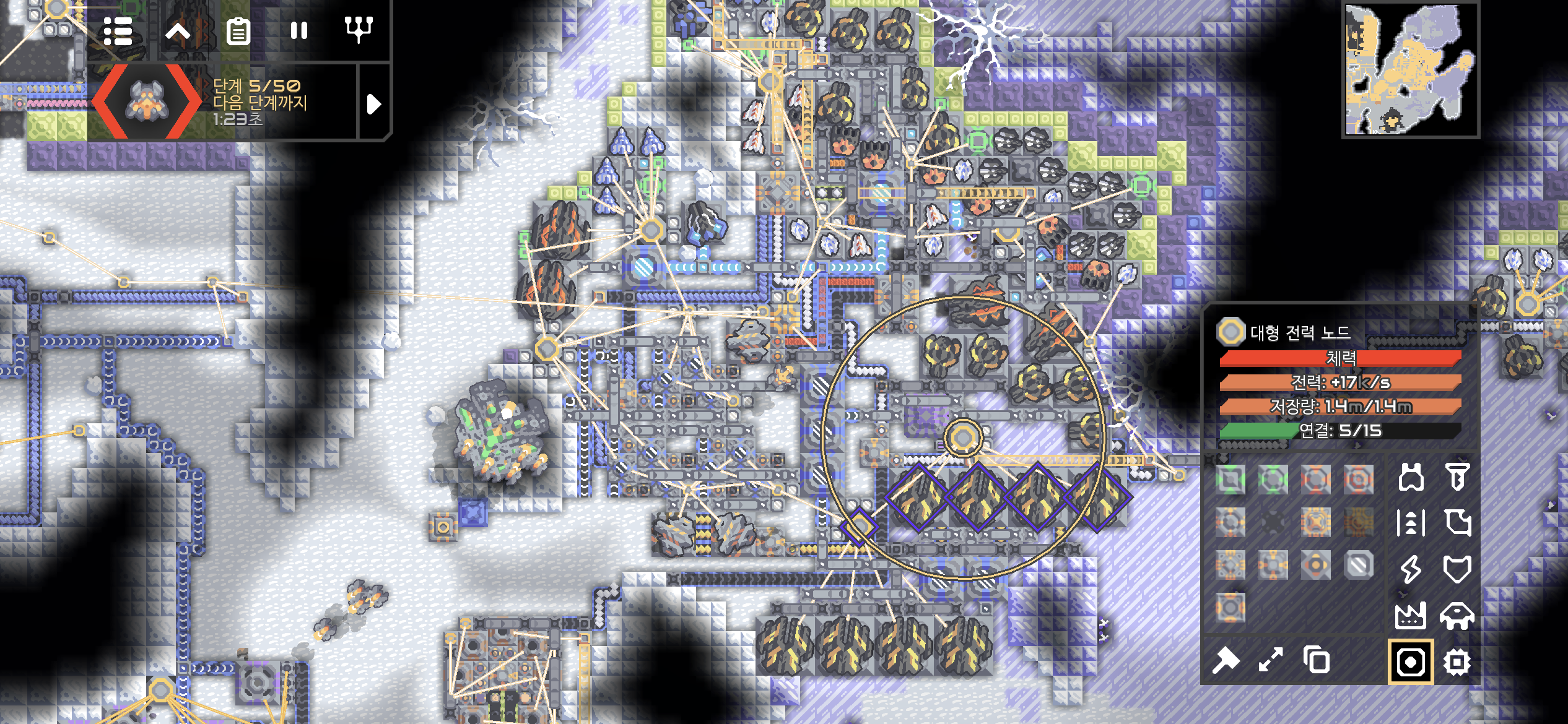 네번째 용암 지대까지 개발이 완료되니 전력이 무려 +48k/s입니다. 이정도면 또다른 발전 시설이 없어도 될듯 합니다.