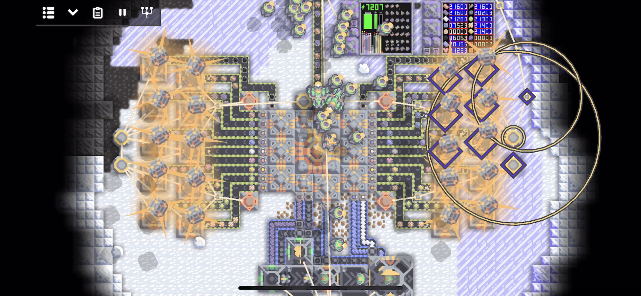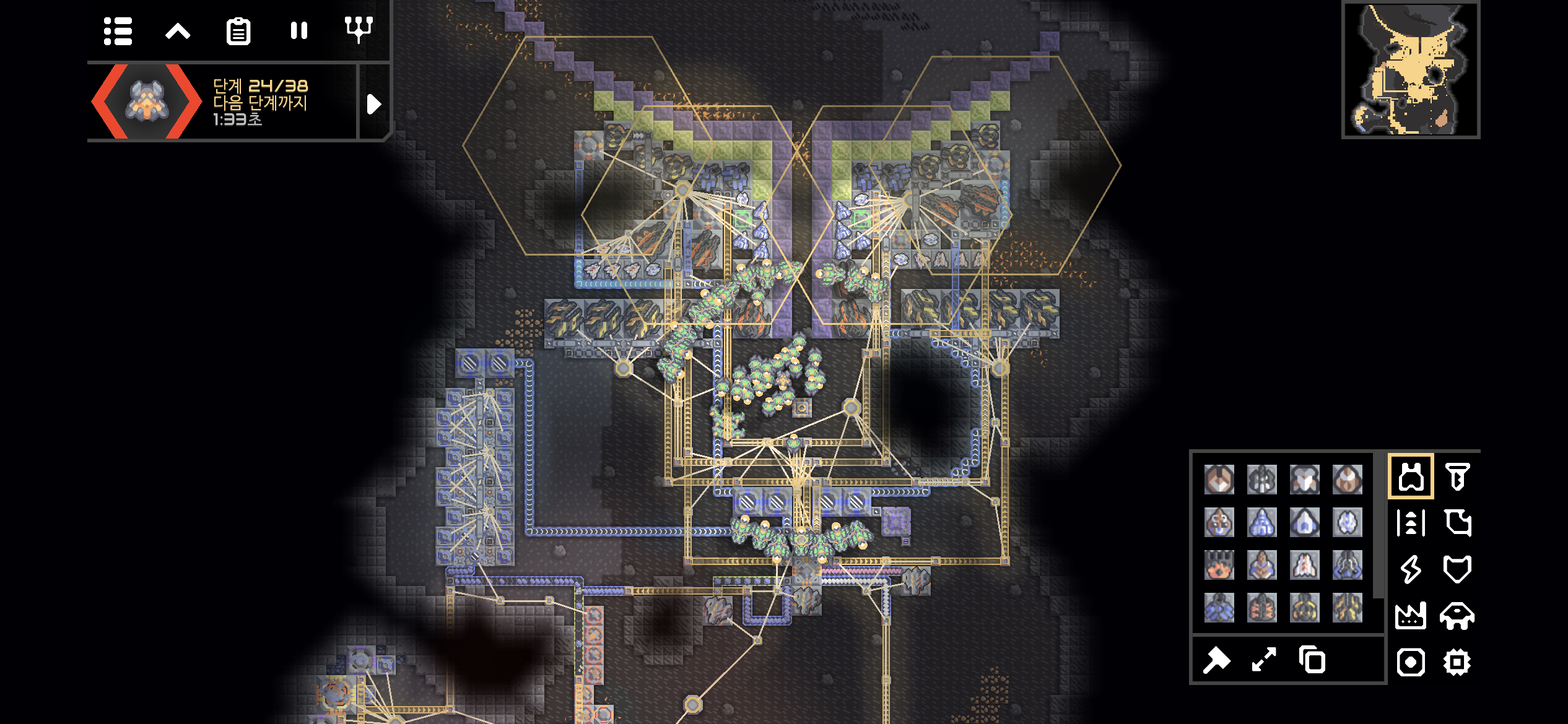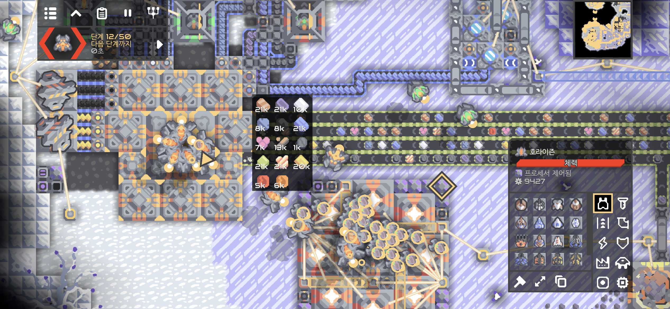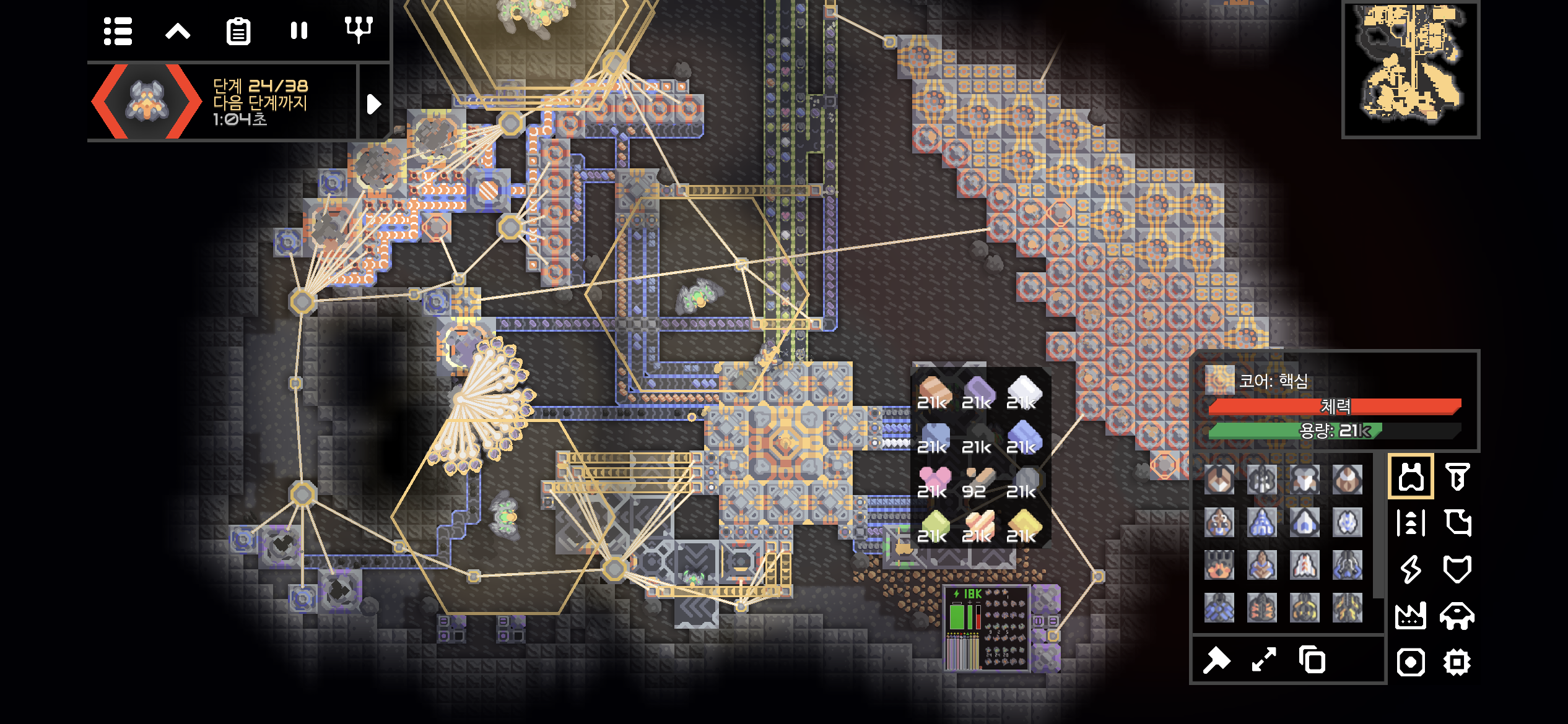 네번째 용암 지대까지 개발이 완료되니 전력이 무려 +48k/s입니다. 이정도면 또다른 발전 시설이 없어도 될듯 합니다.