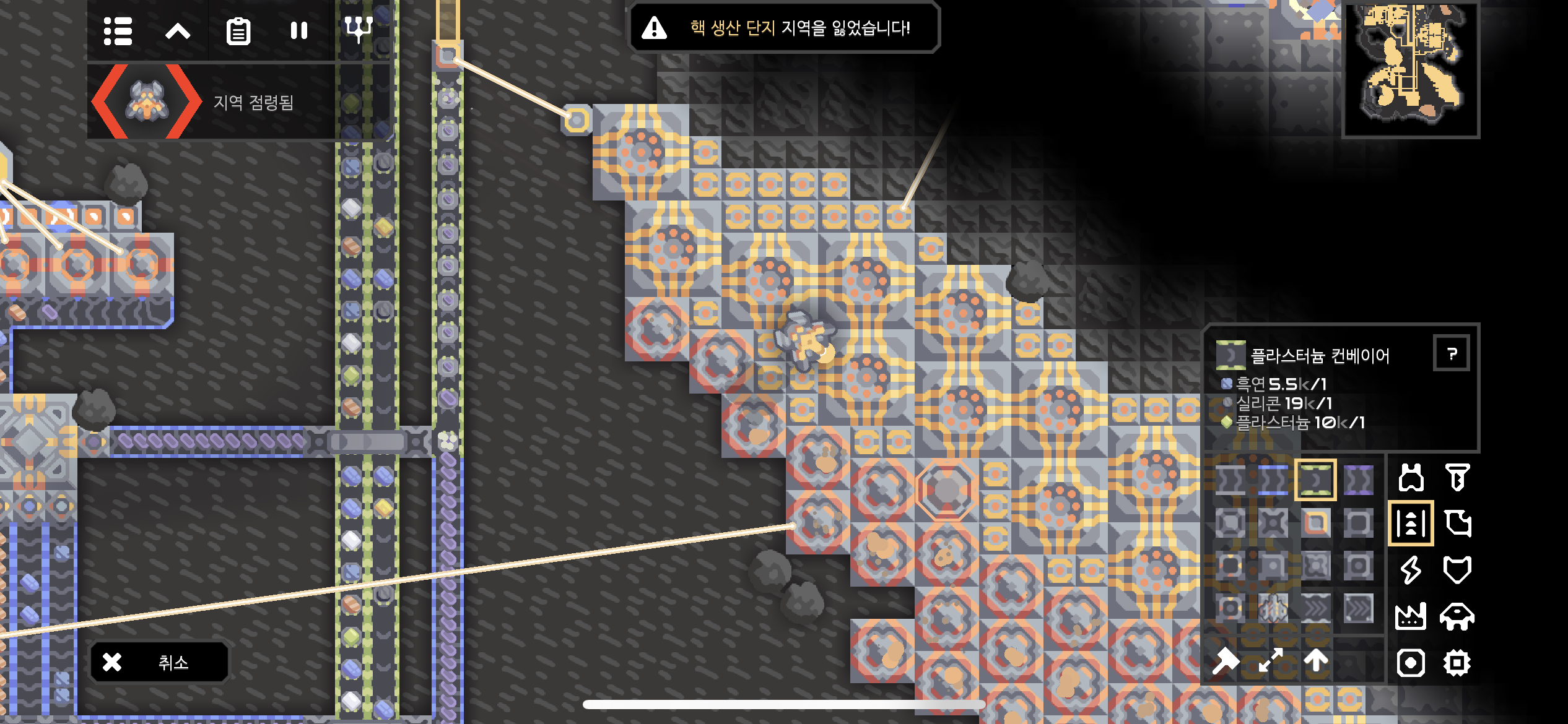 모노와 폴리가 벌써 최대 유닛 수에 도달했습니다. 시작 설계도 공장은 모두 철거하고 코어에 창고와 컨테이너를 붙여 건설합니다.