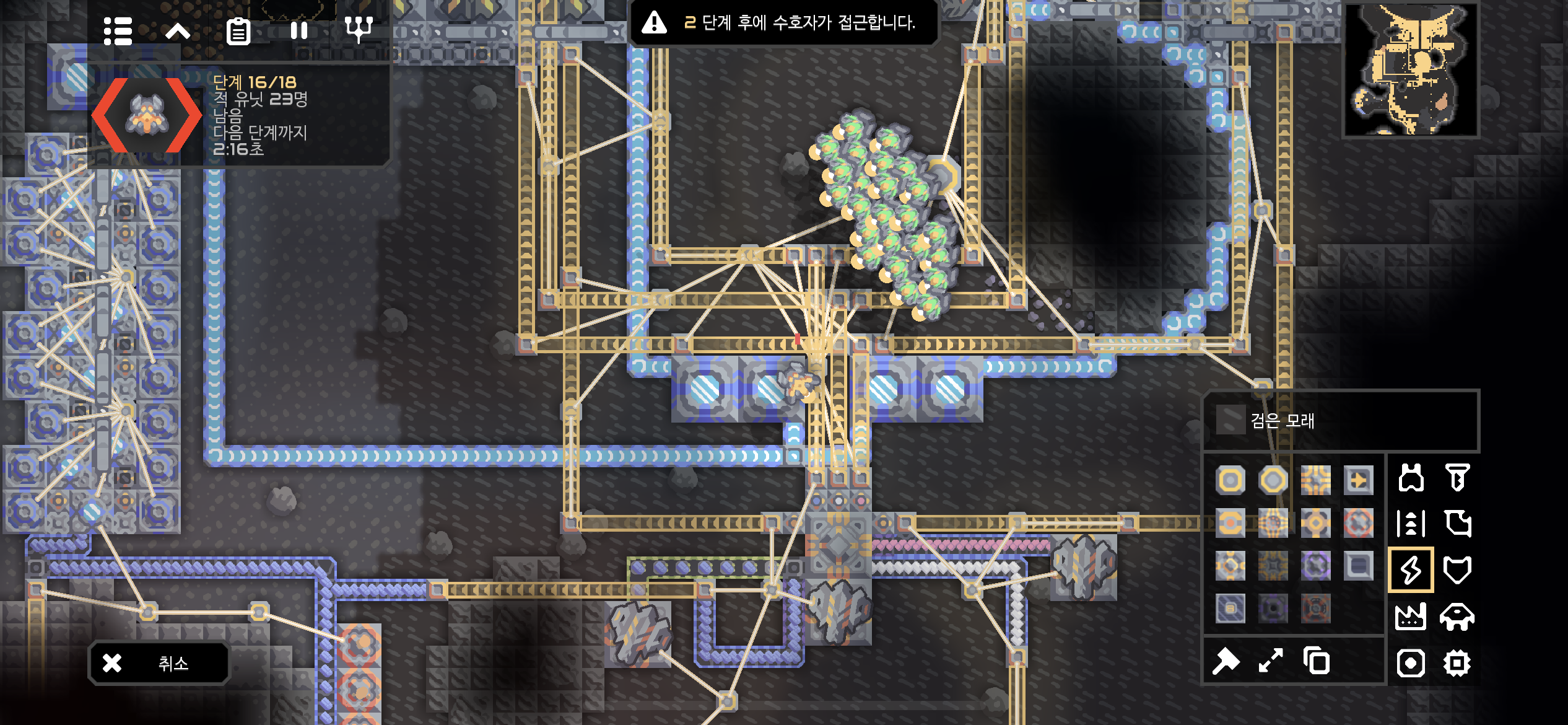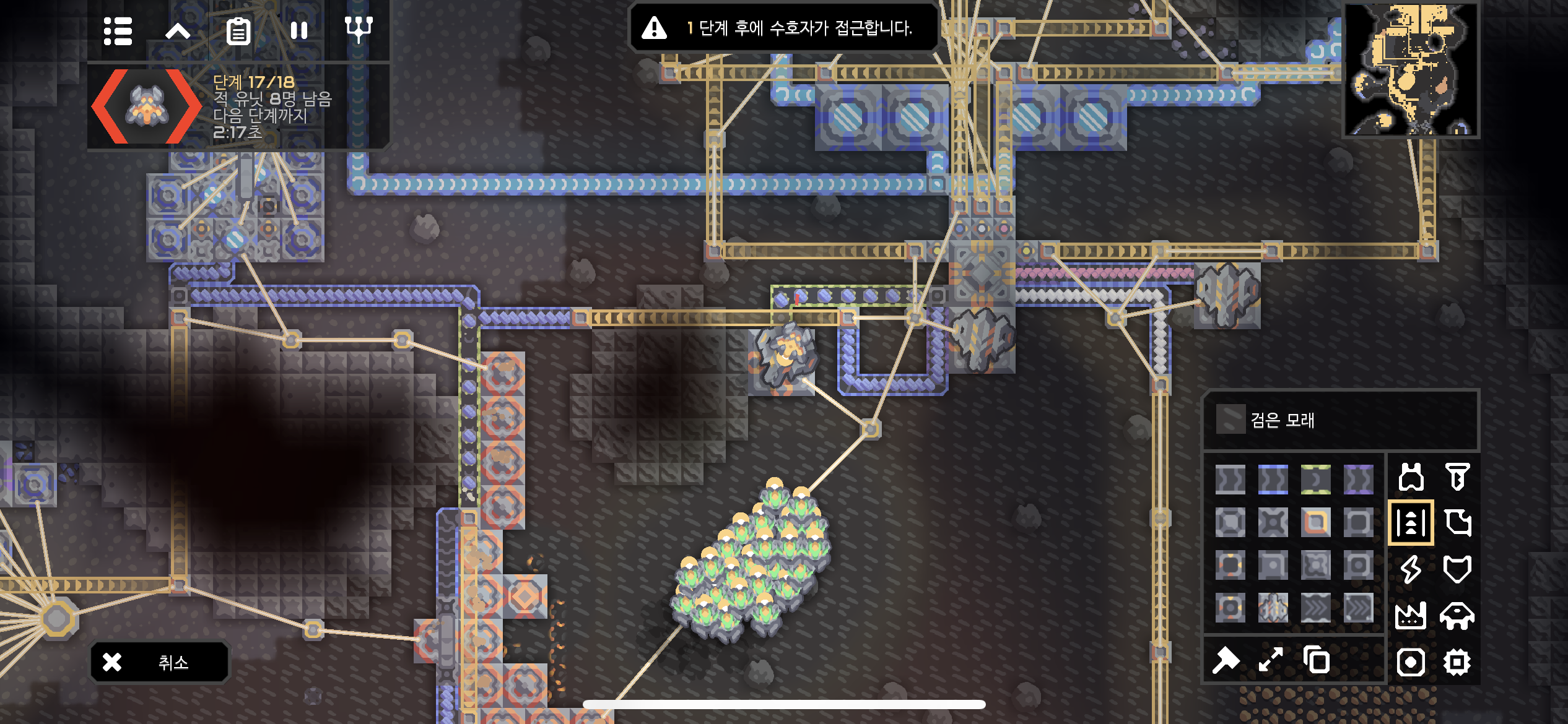 유닛 공장을 다시 건설하던 도중 적 수호자 접근 알림..!