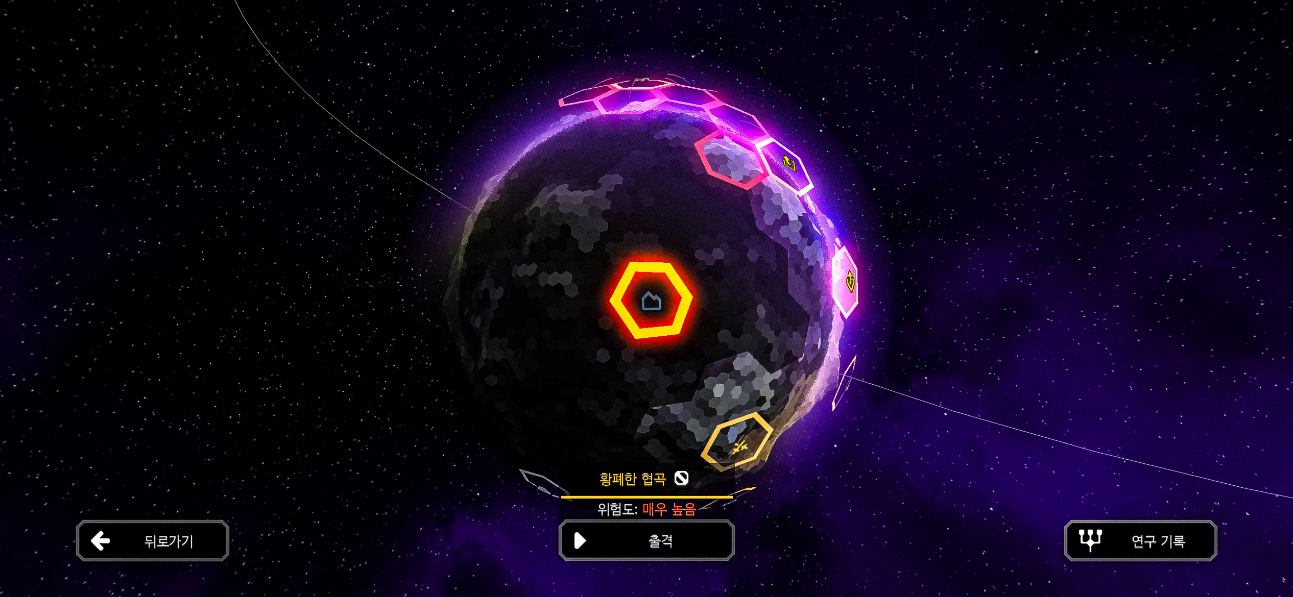 극도로 위험한 지역입니다. 자원은 풍부하지만, 사용 가능한 공간은 거의 없습니다. 코어 파괴의 위험성이 높으니 가능한 한 빨리 떠나십시오. 또한, 적의 공격 딜레이가 길다고 안심하지 마십시오.