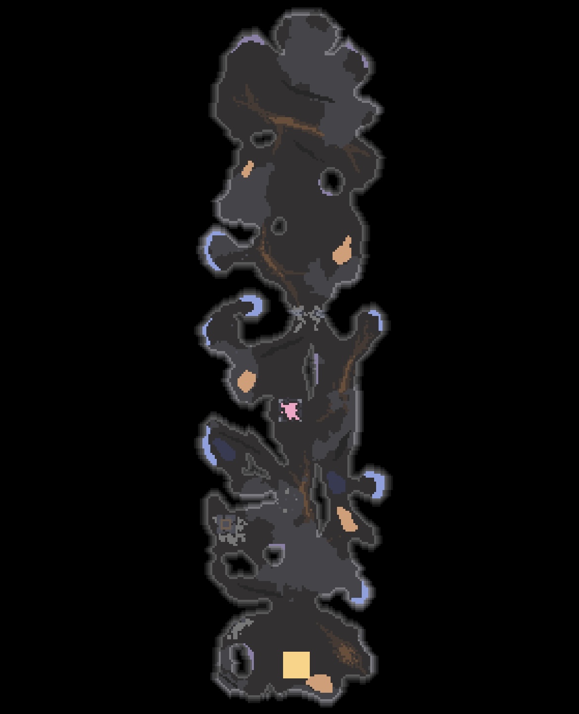황폐한 협곡 미니맵. 좁고 길다란 지형구조가 특이하네요. 그리고 미니맵에서 납이 별로 보이지 않습니다.
