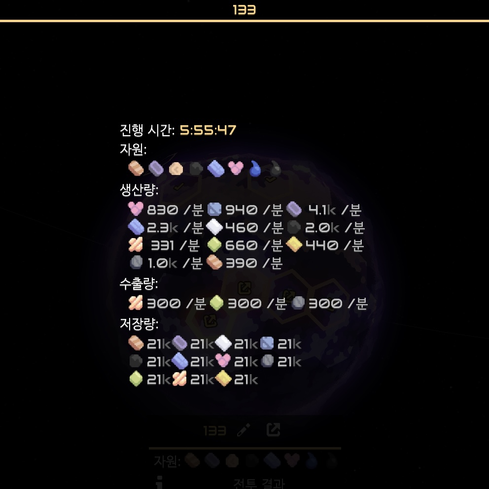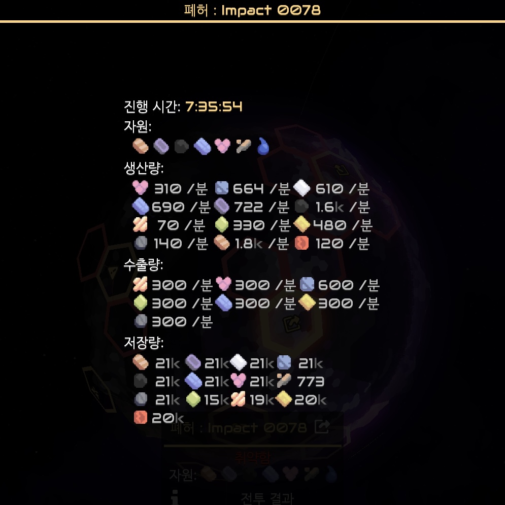 필요에 따라 자원이 부족한 지역으로 각 자원을 600씩 + 과부하 프로젝터의 50% 속도증가 효과로 각 지원을 매 분당 900씩 출격이 가능하게 됐습니다.
