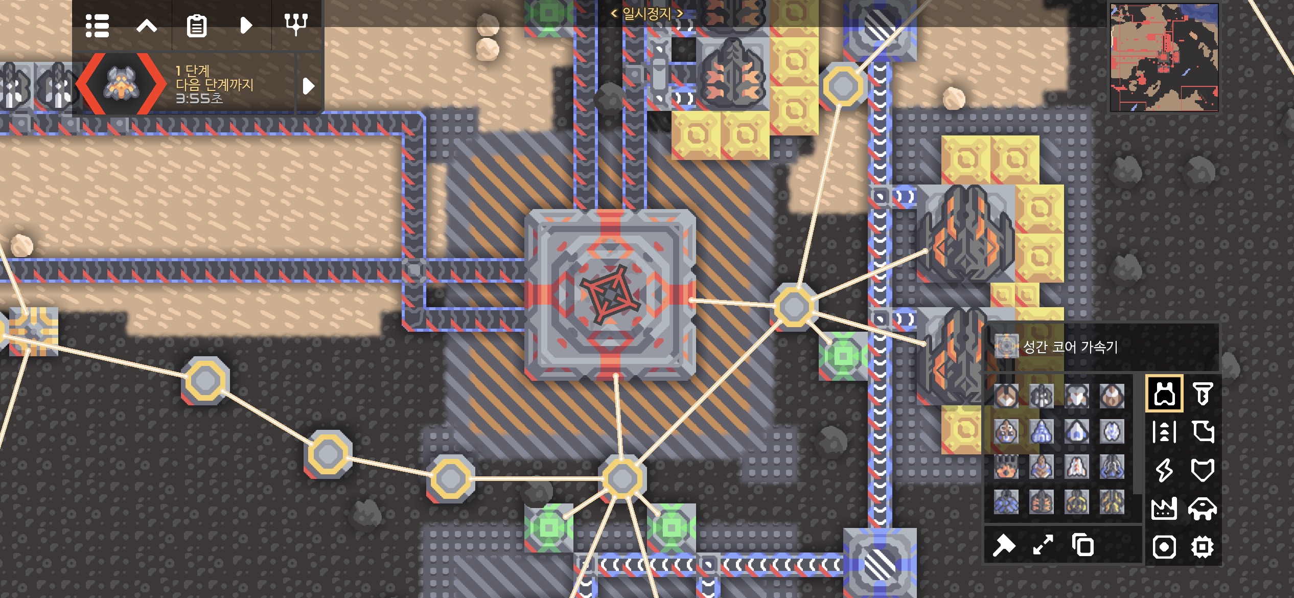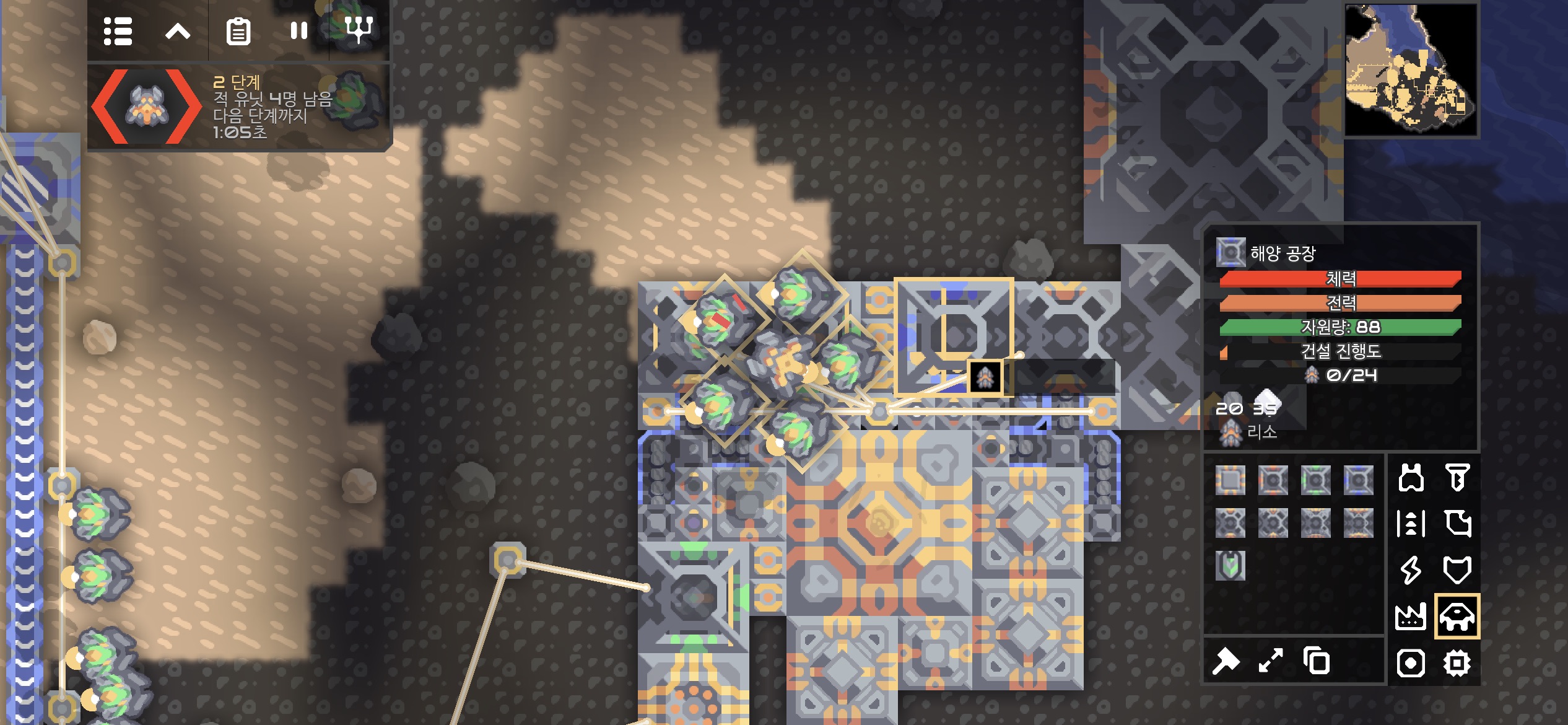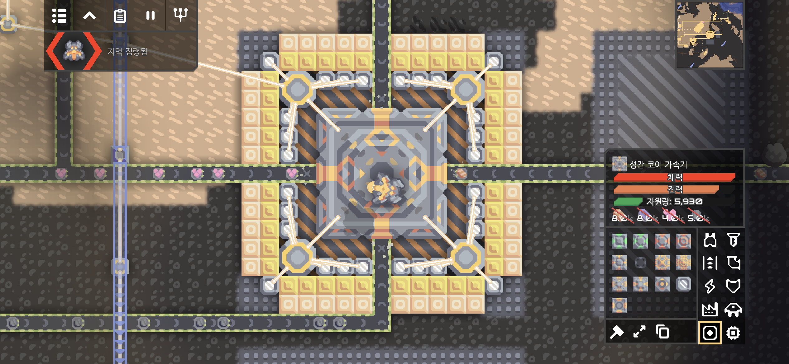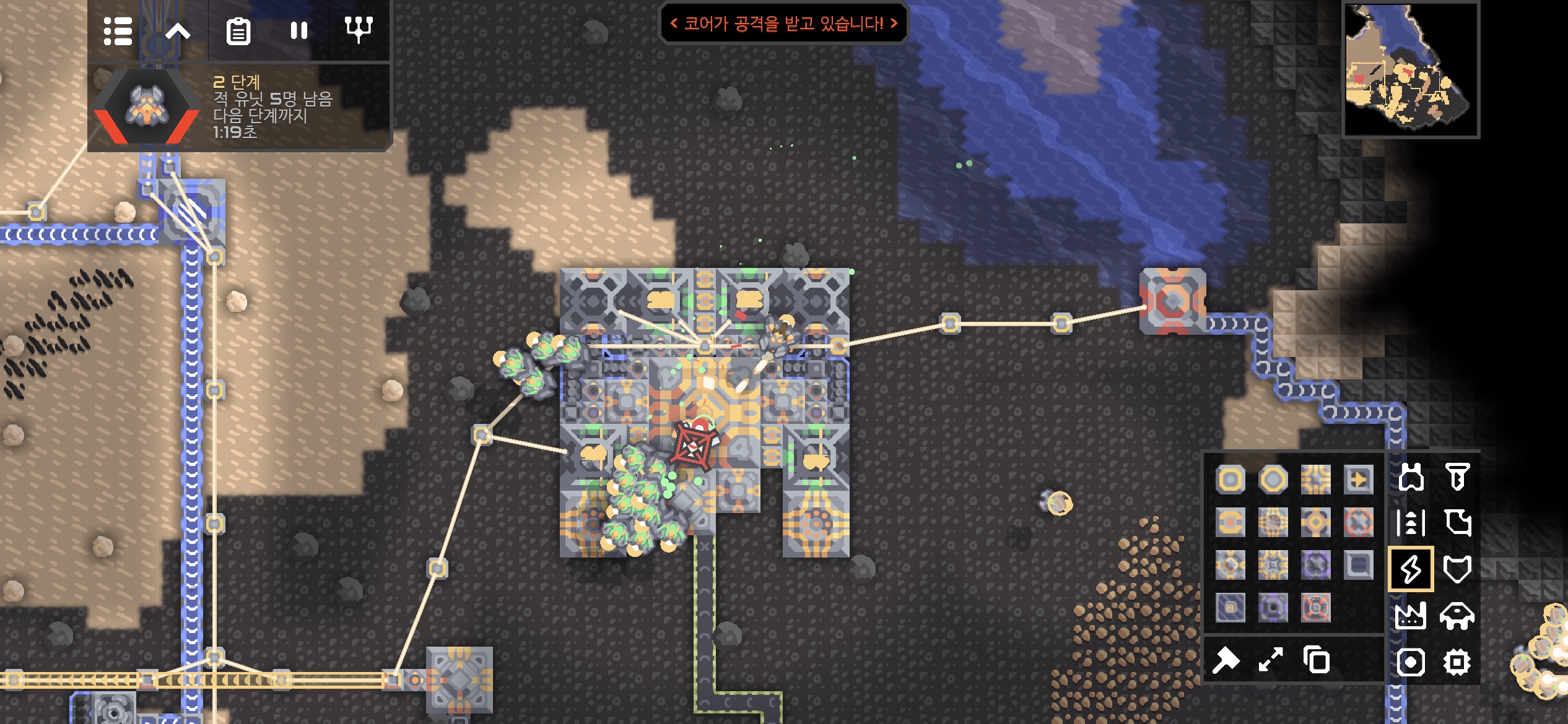 적 코어 주변에 해양 공장과 재구성기가 있어 단계가 진행되지 않아도 생산된 적이 지속적으로 공격해옵니다.