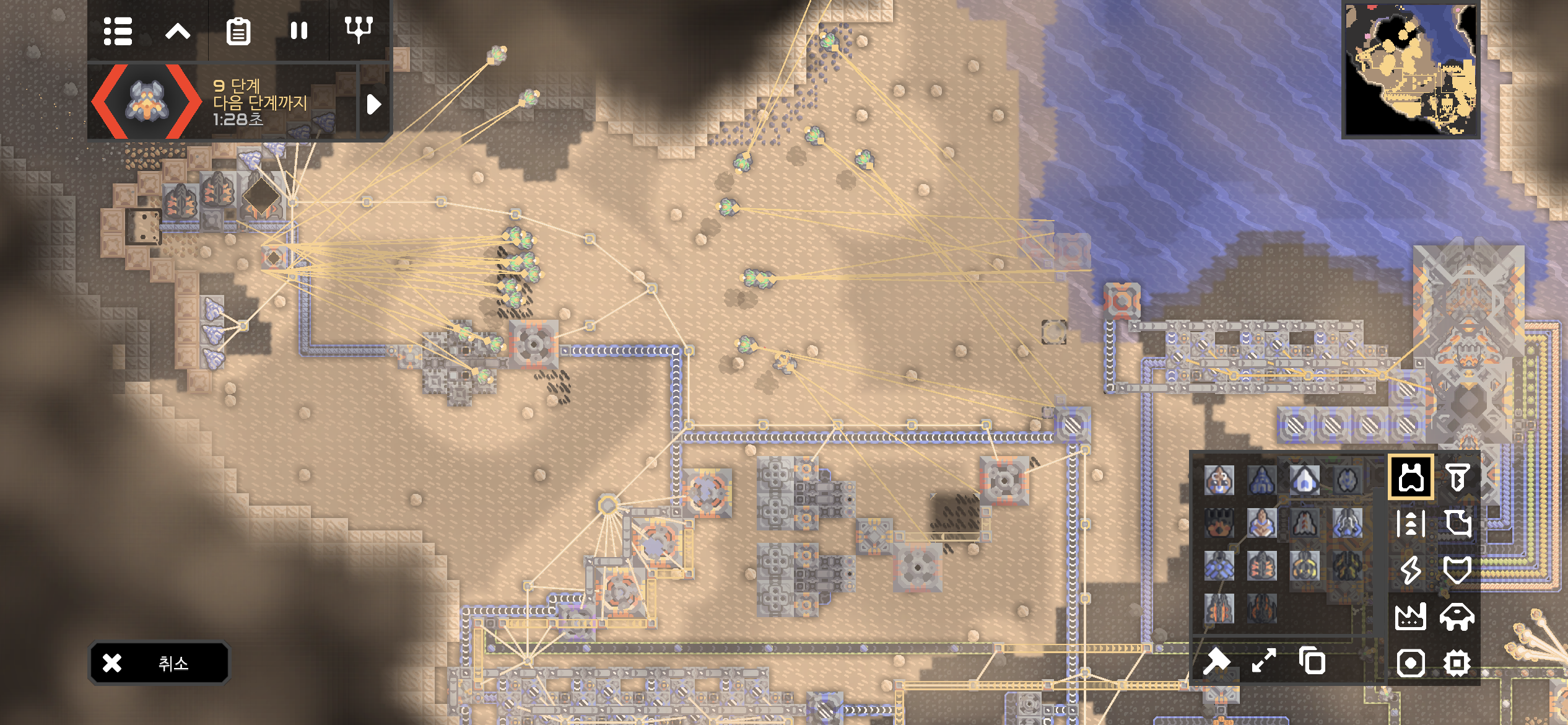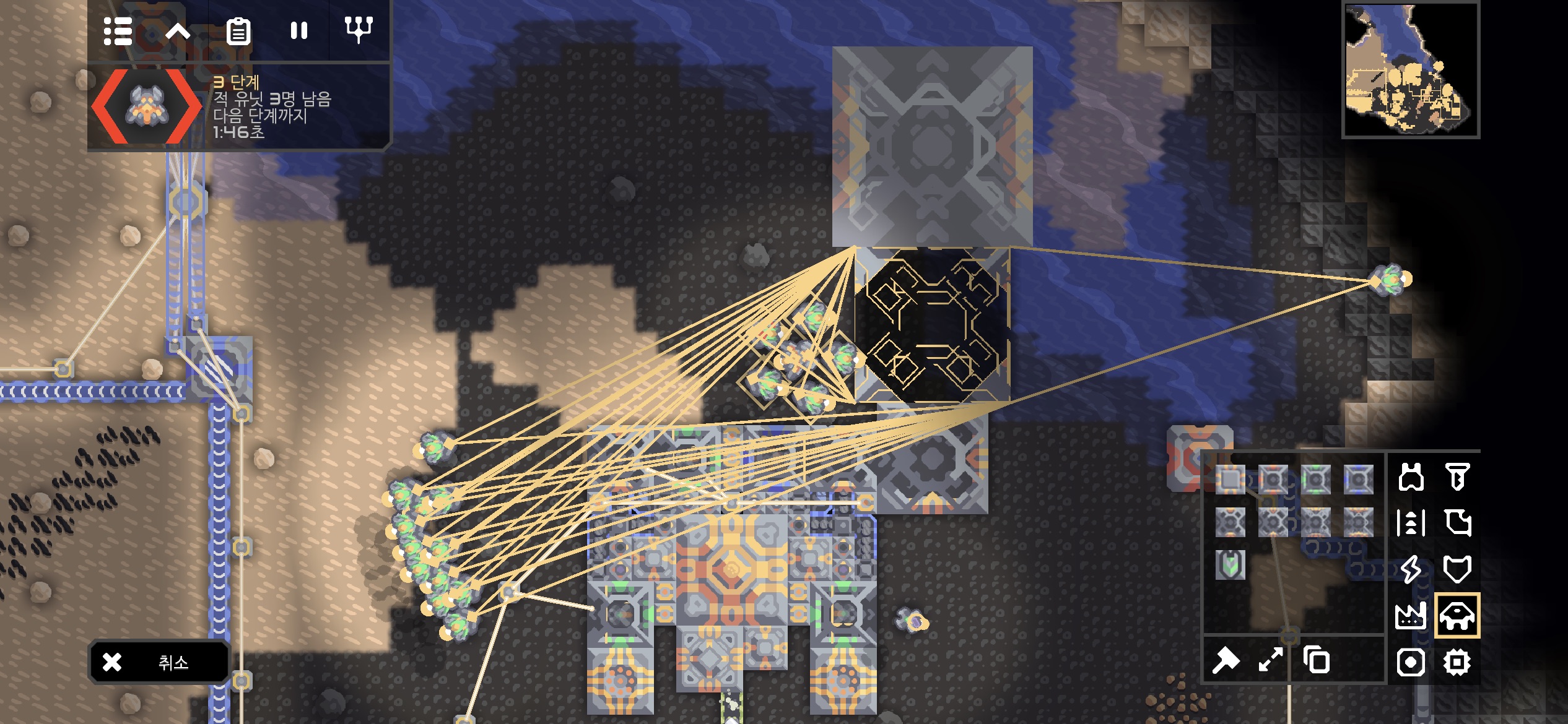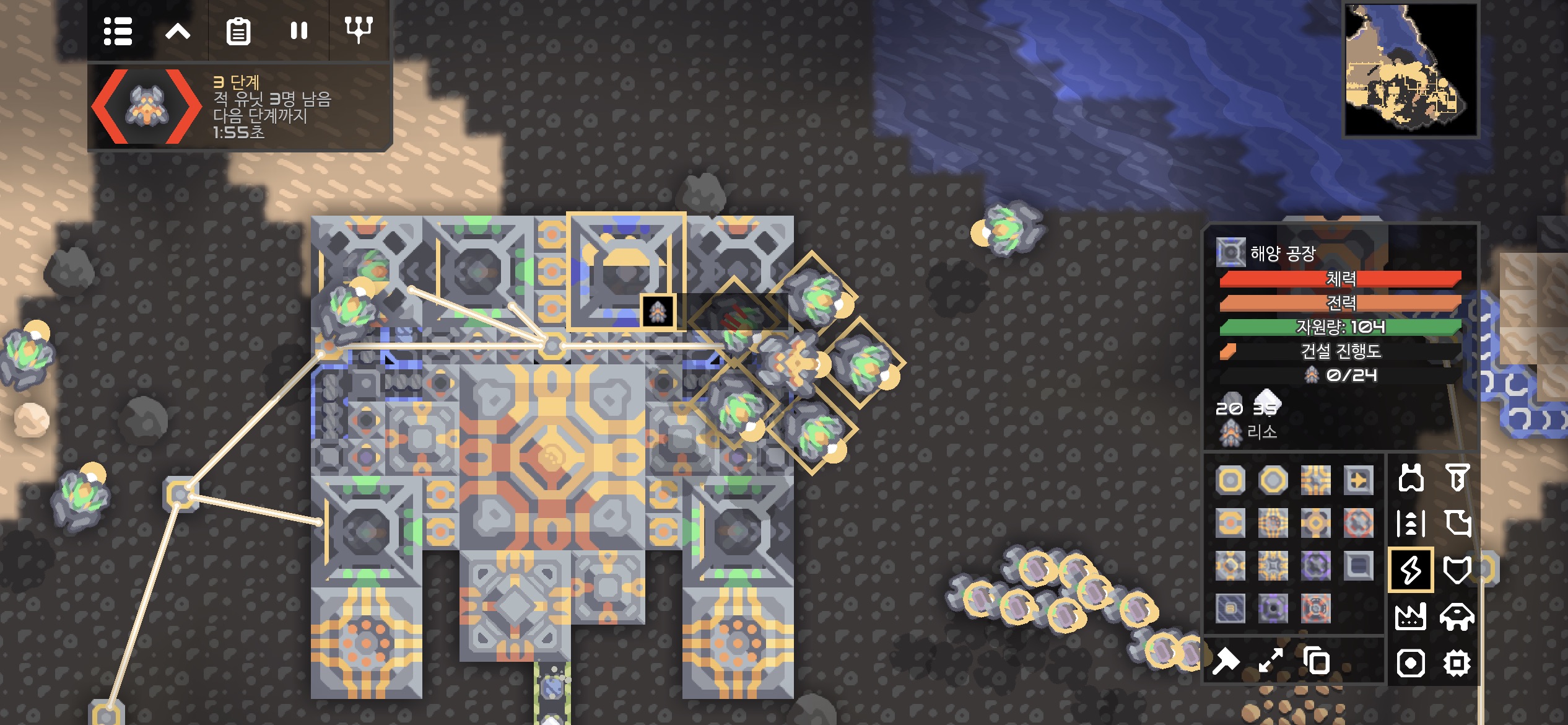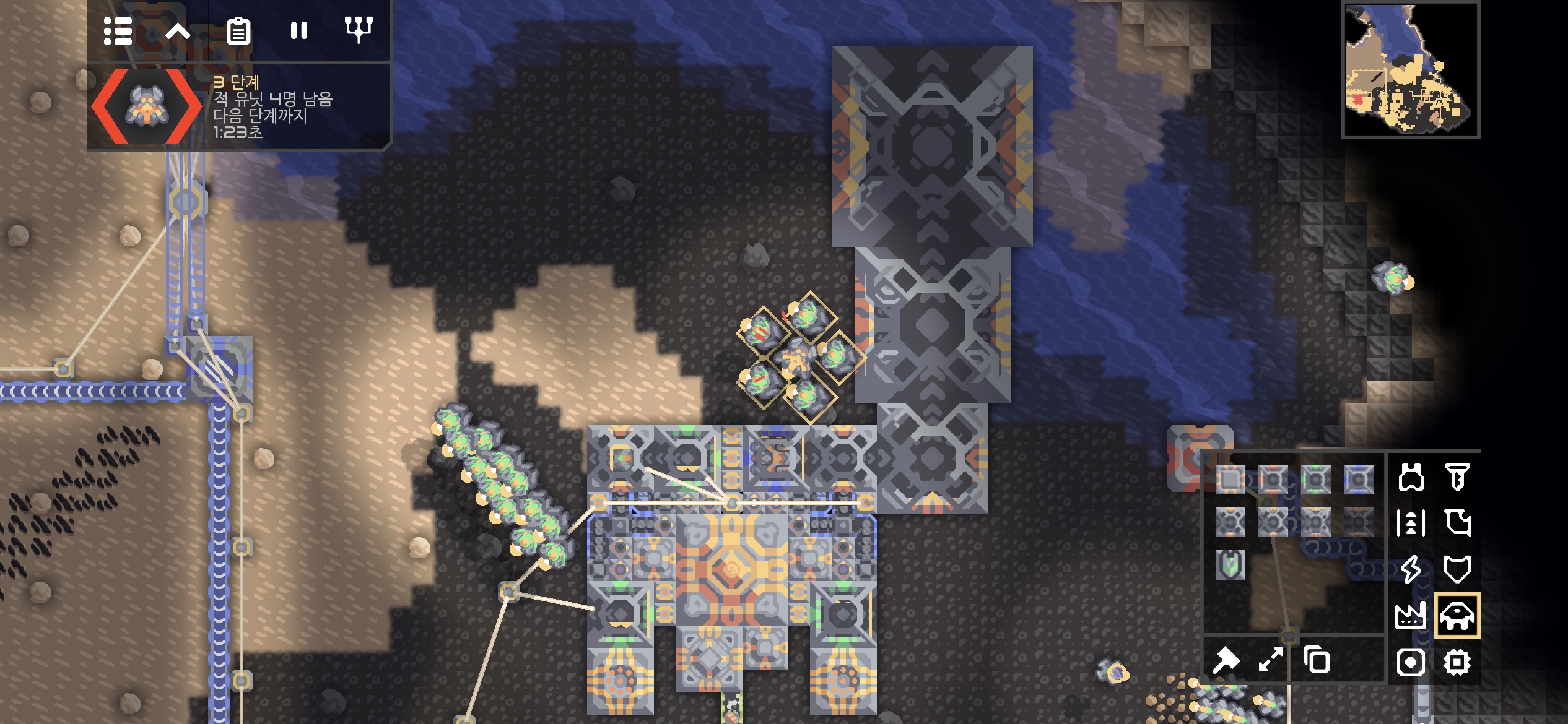 적 코어 주변에 해양 공장과 재구성기가 있어 단계가 진행되지 않아도 생산된 적이 지속적으로 공격해옵니다.