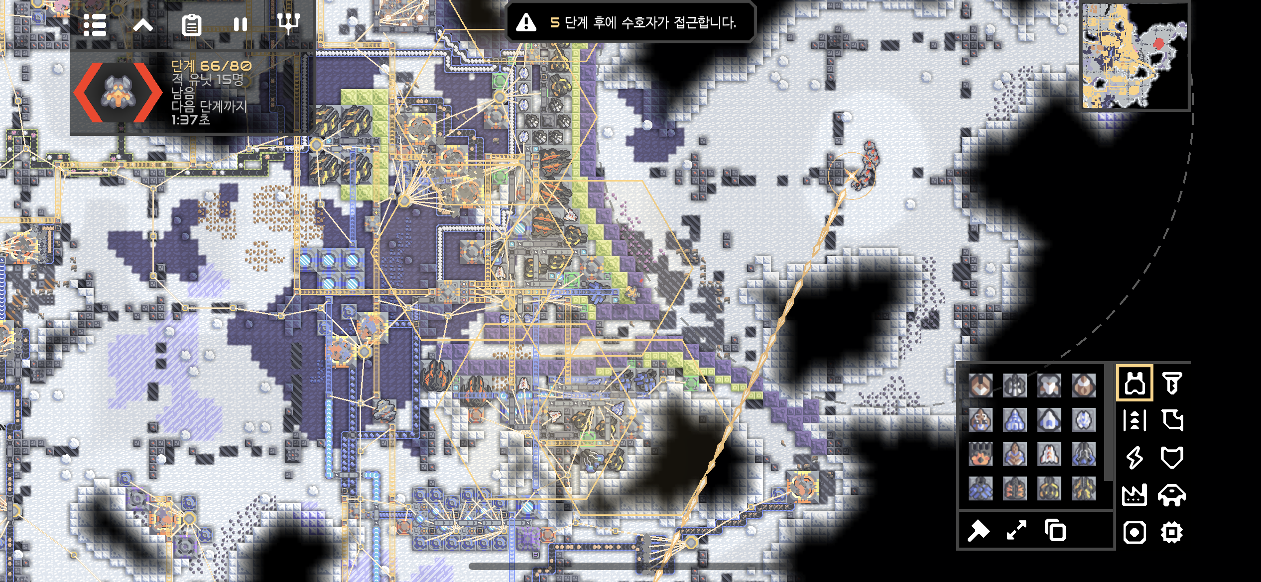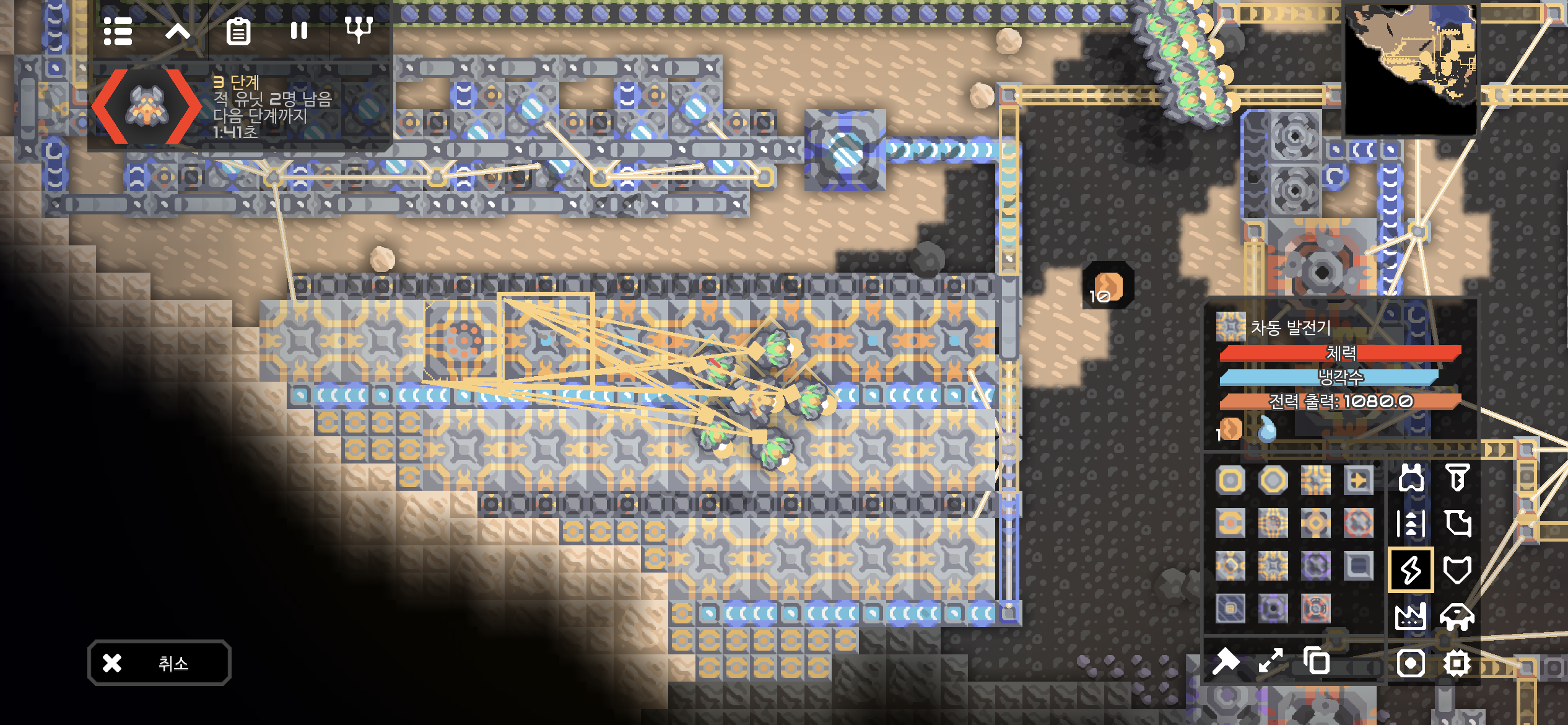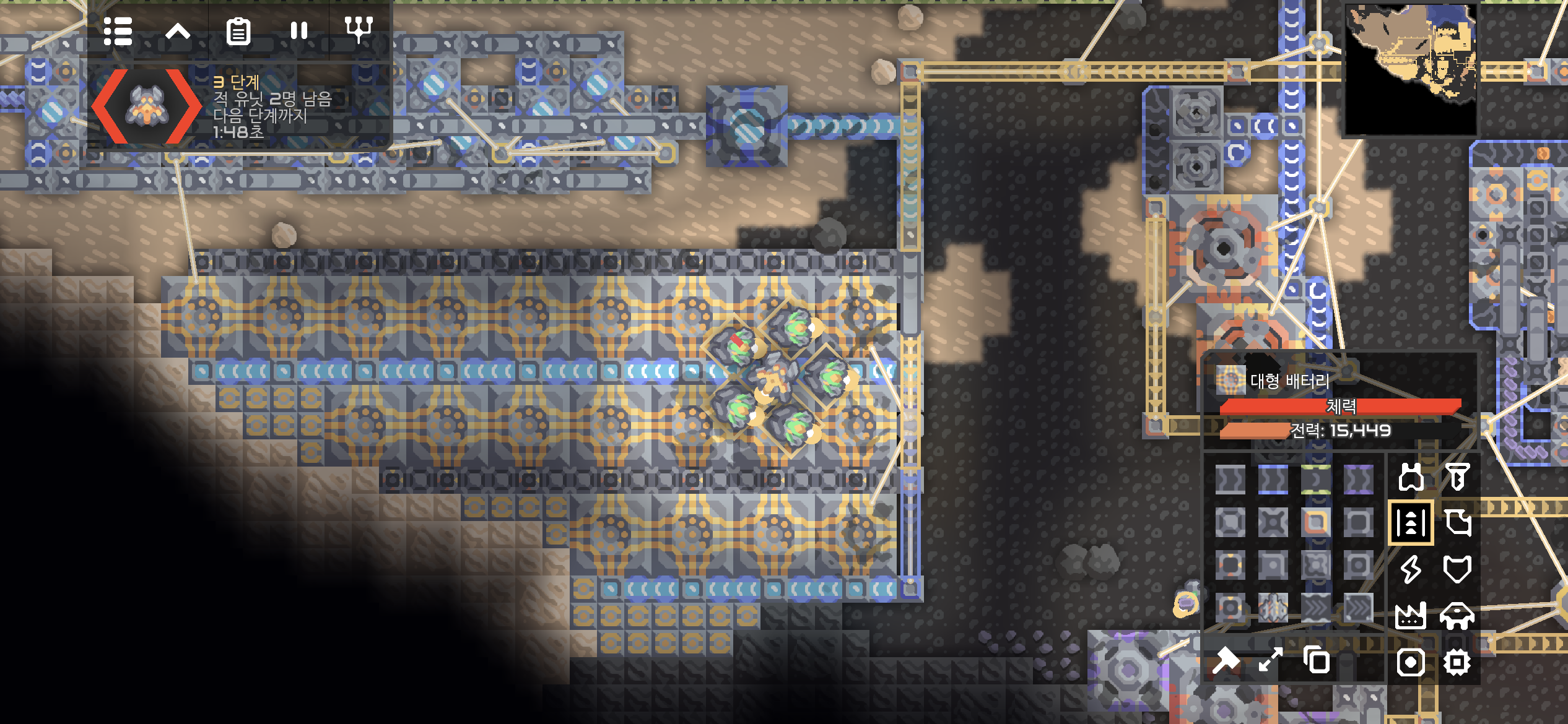발전 시설도 공격하는 적의 공중 유닛들.. 폴리와 함께 열심히 적을 격추시킵니다.