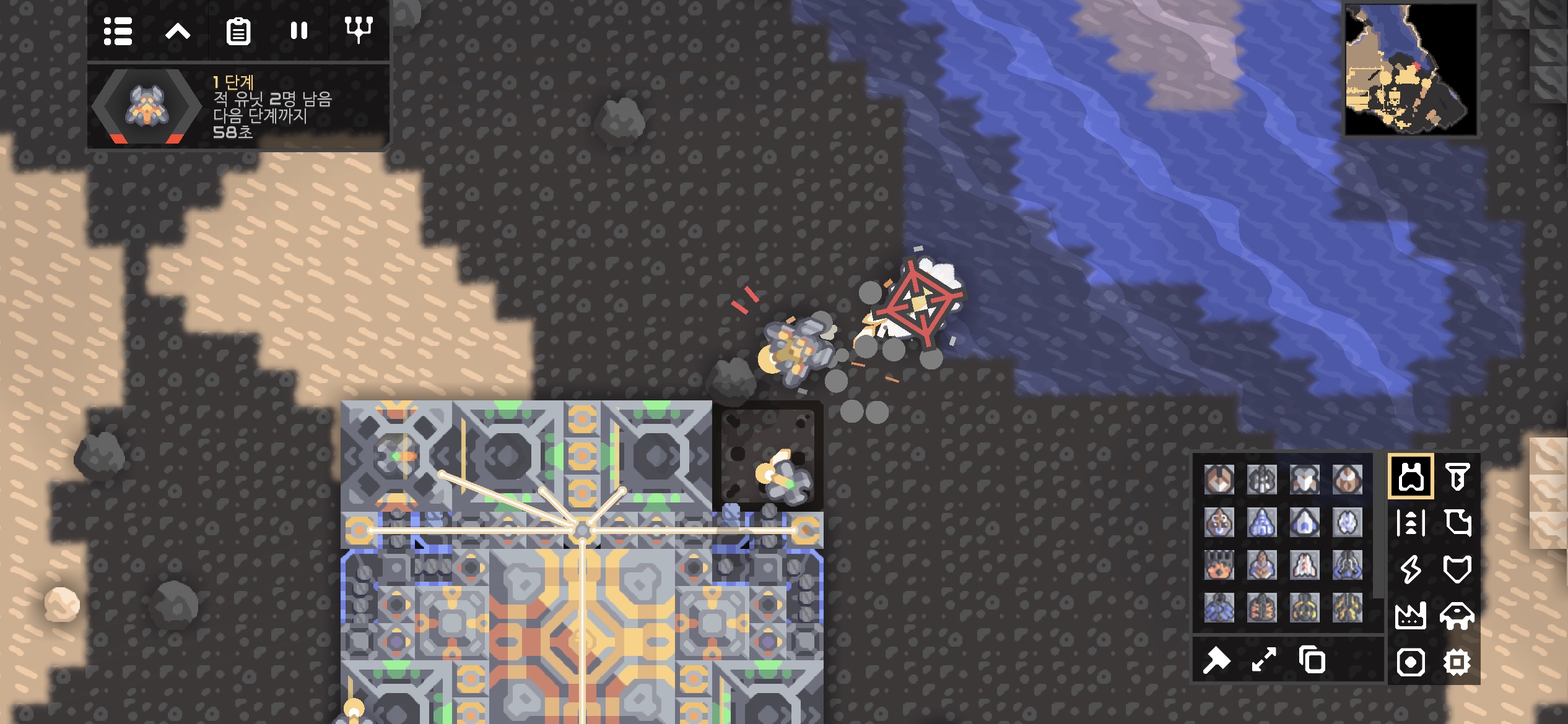 단계가 진행될수록 적의 지상 유닛 비중이 점점 늘어갑니다. 강해지는 적 지상 유닛을 대비해 립플과 랜서를 배치해 간단한 디펜스 라인을 만들었습니다.