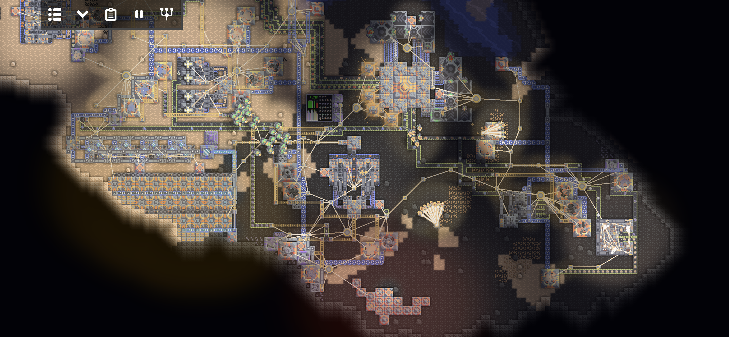 핵융합 원자로 네기가 가동되고있고, 열여섯 개의 설금 제련소가 배치된 설금 공장이 가동되고 있습니다. 노란 모래 위의 석유 추출기는 효율이 70%이지만 그래도 플라스터늄을 생산하는 공장이 잘 가동되고 있습니다.