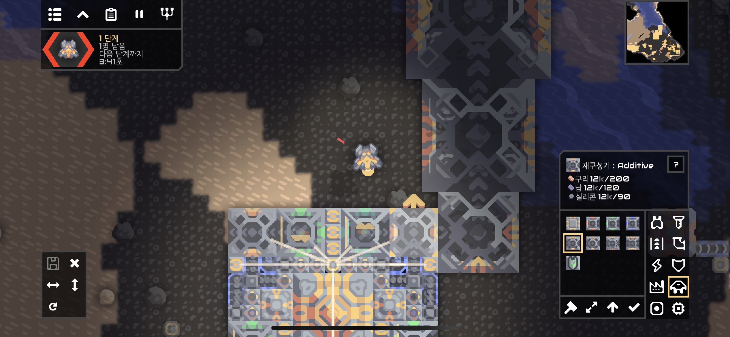 코어 자원을 꺼내어 오무라의 생산 재료로 쓰는데 실리콘이 부족하네요. 전초기지에서 자원 출격을 받는것 이상이 필요한 것 같아 실리콘 공장을 만들기로 합니다.