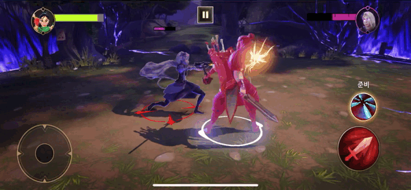 왼쪽 하단의 조이스틱으로 이동, 회피하며 오른쪽 버튼으로 공격과 필살기를 사용합니다. 전투 도중 다른 캐릭터를 선택하여 플레이도 가능합니다. 스테이지 진행 정도에 따라 최대 3인 1팀으로 구성이 가능합니다.