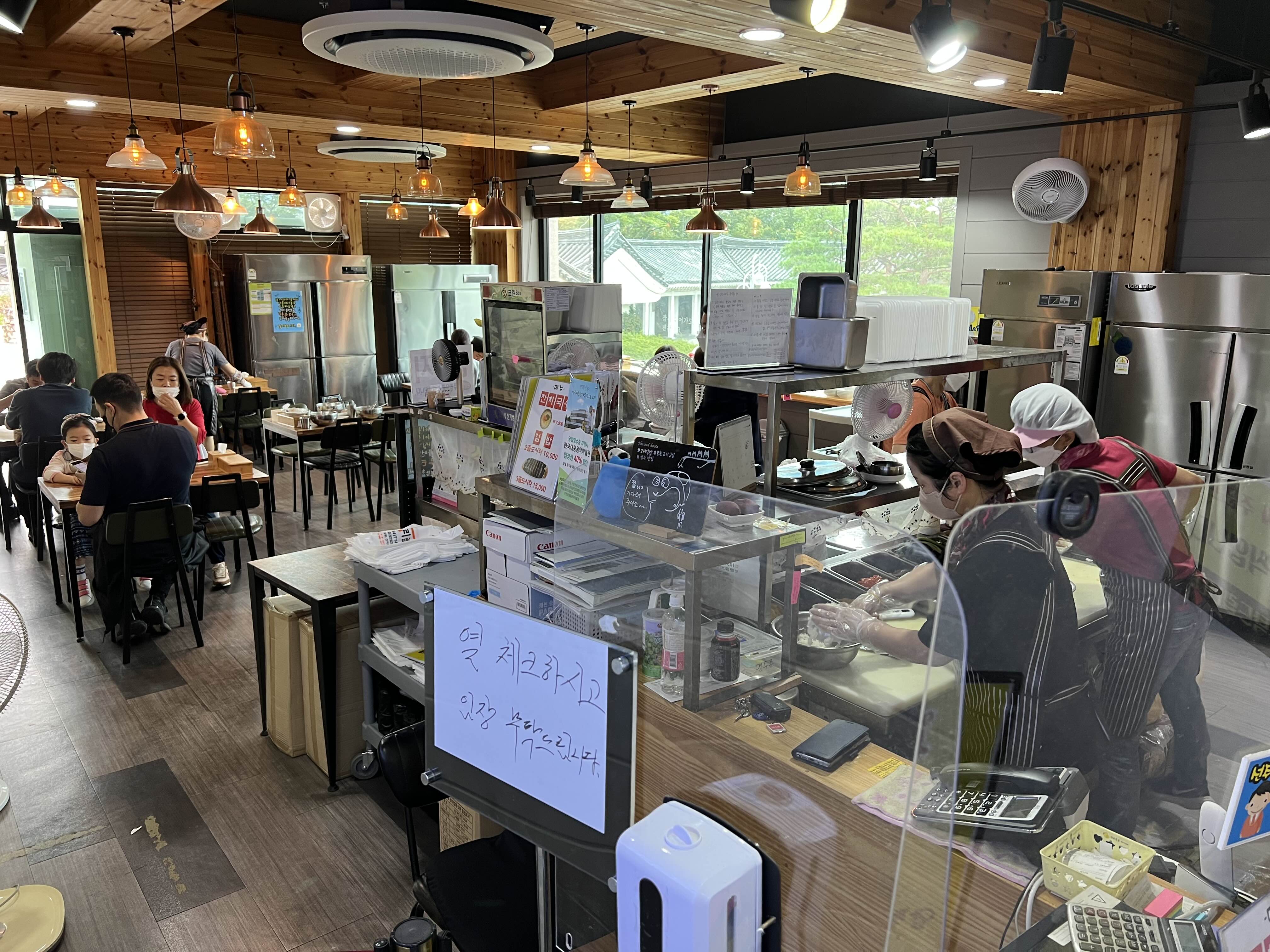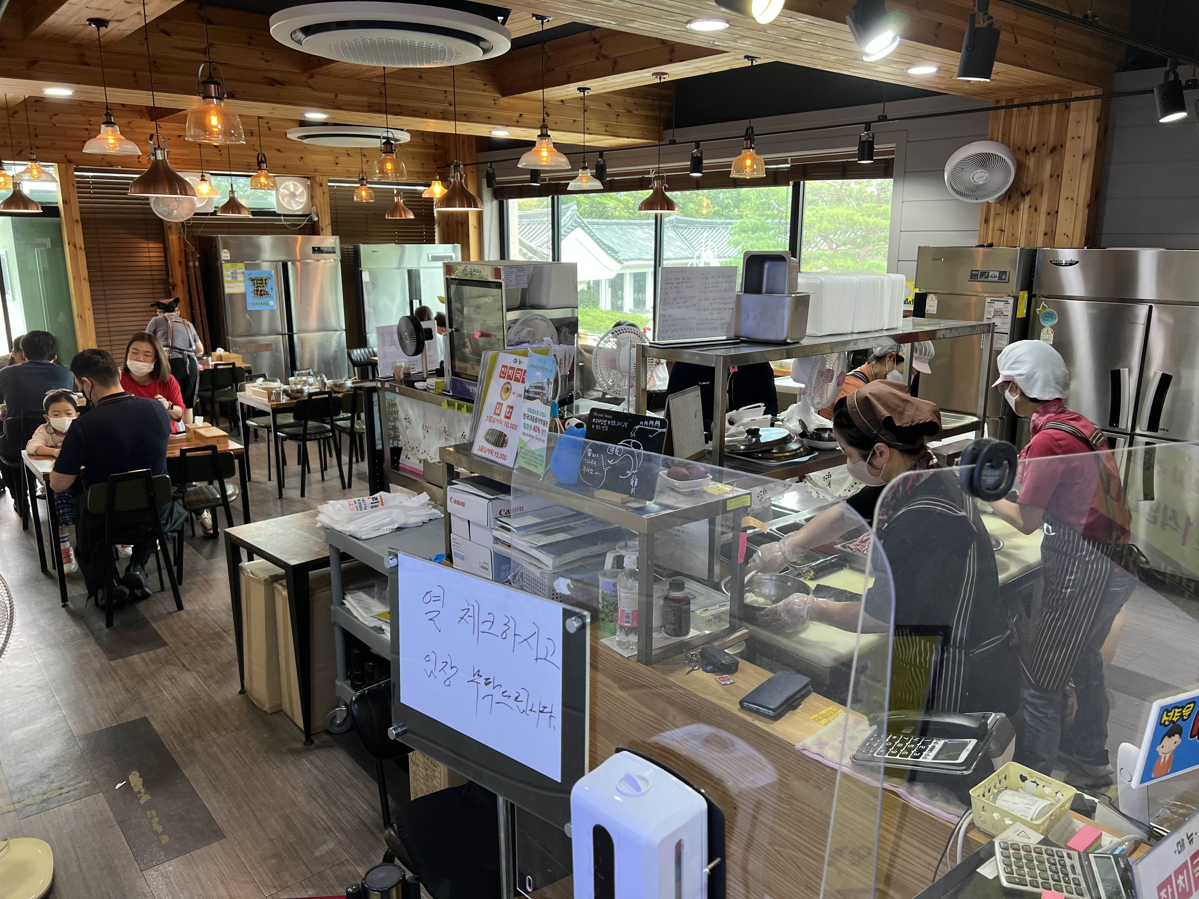 들어서자 깨끗한 주방 내부가 훤히 보입니다. 그리고 다행히 내부 테이블엔 빈자리가 있습니다. 대부분 포장해서 가져 가시나봐요.