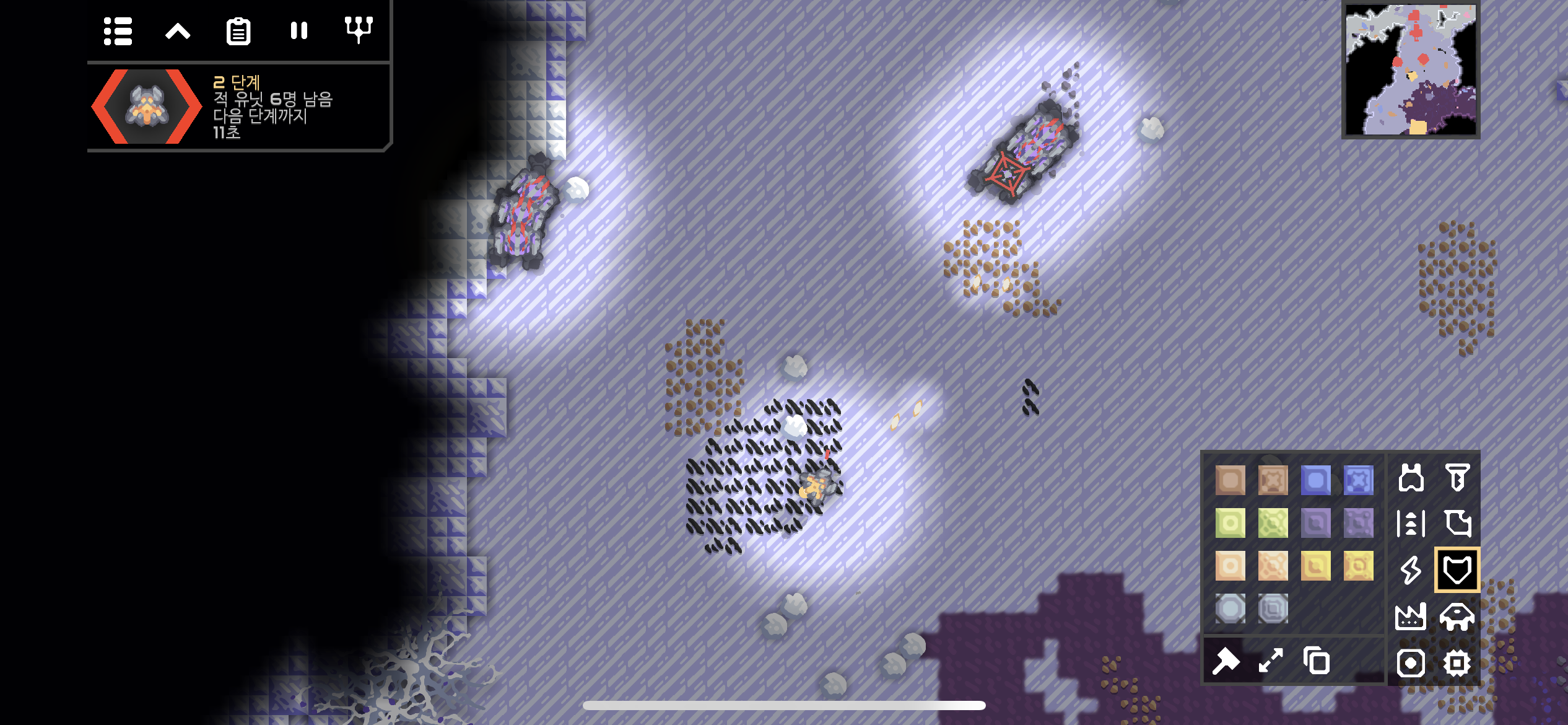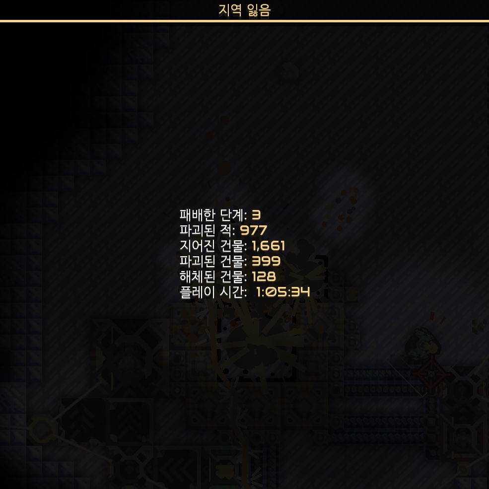 코어가 공격받는다는 메시지는 버그인가봐요. 코어 주변에는 파괴된 건물의 흔적이 보입니다.