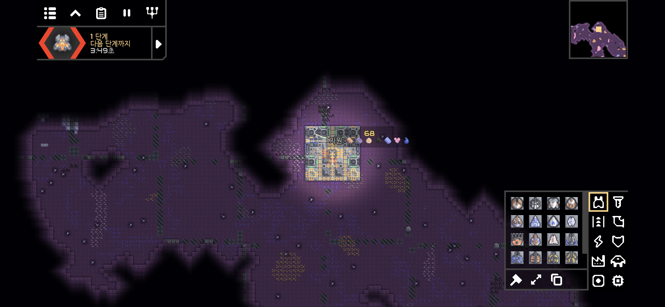 섹터 68의 미니맵. 자원 생산 시설을 만들 예정은 아닙니다만 모래가 많이 없는게 아쉽네요. 모래가 많으면 토륨과 모래로 많은 메타를 만들 수 있을텐데 말입니다.
