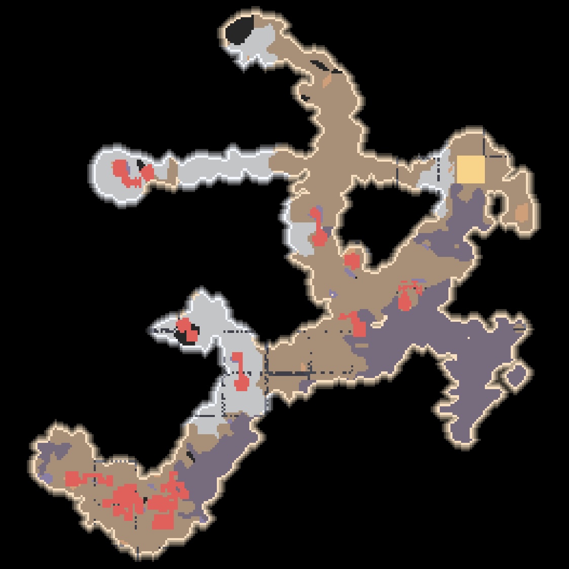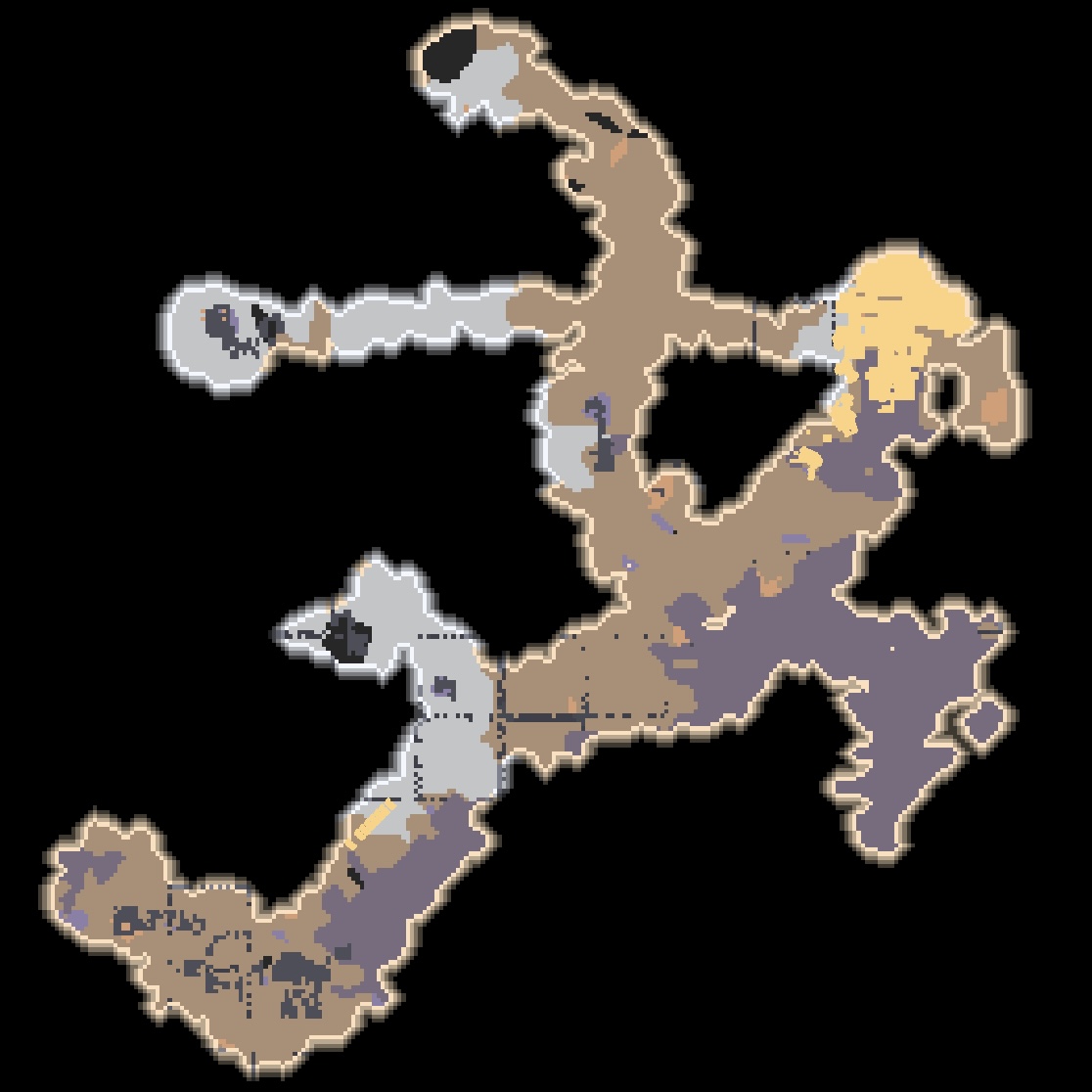 섹터 0 미니맵. 모래와 소금, 얕은 물로 이뤄진 지형입니다.