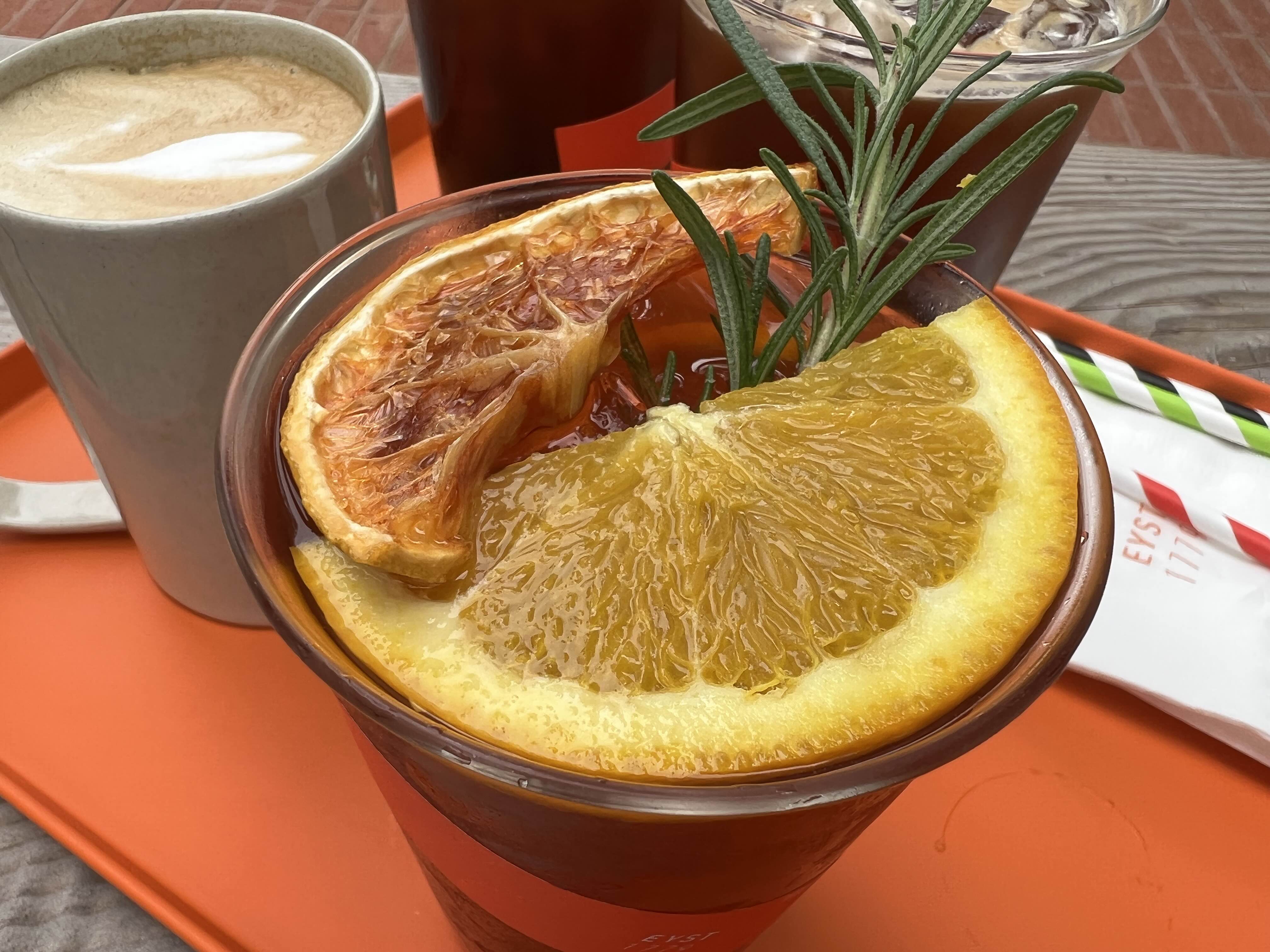 참 예쁜 자몽 블랙티. 자몽이 허브와 사이좋게 담겨 있습니다.