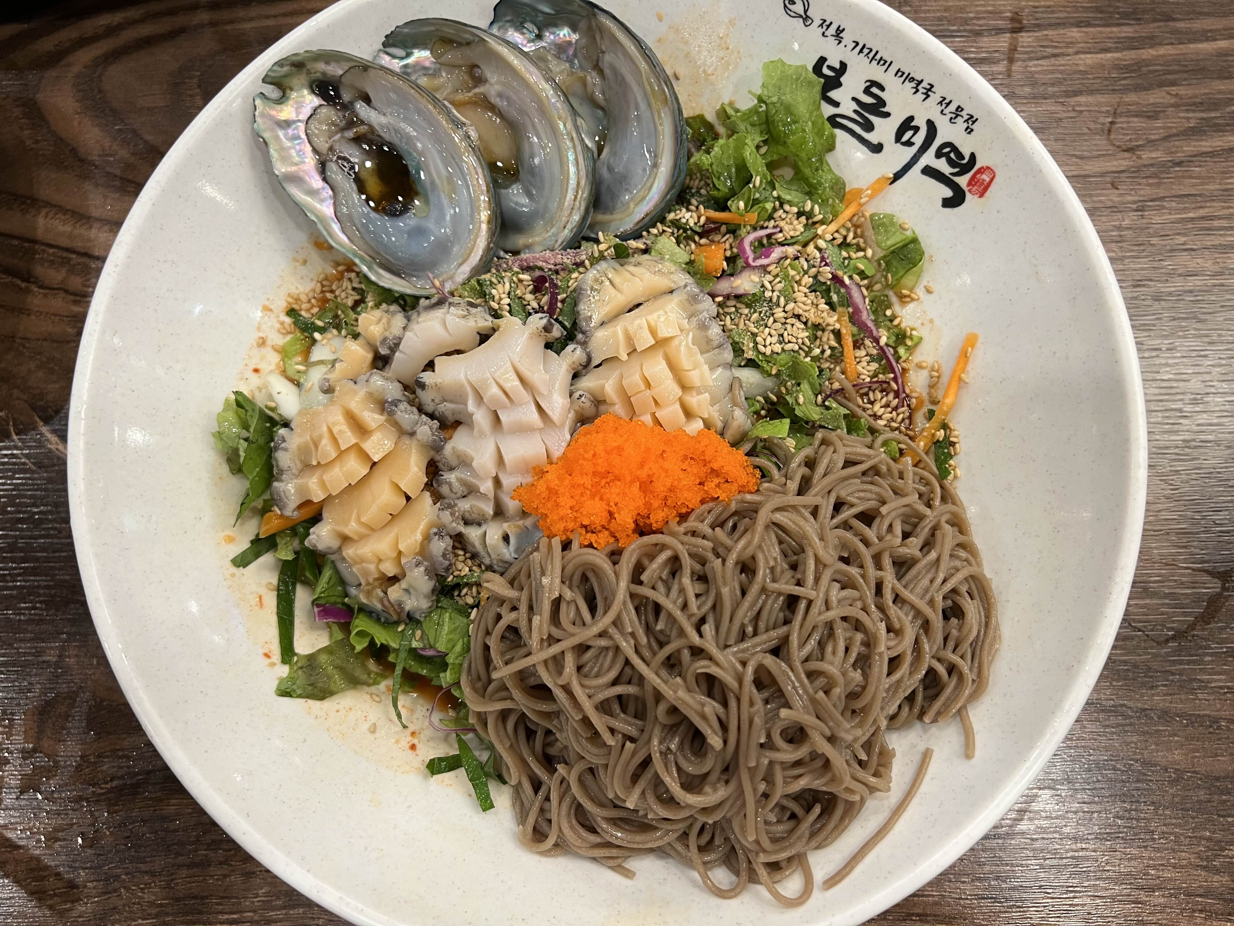 미역국을 좋아하는 아가는 롯데월드에 놀러 올 때마다 보돌미역을 찾습니다. 보돌미역의 메뉴에는 미역국뿐만 아니라 불고기, 코다리조림 등 다양한 한식이 있어 아가랑 밥 먹기 정말 좋은 곳이에요. 늘 먹던 불고기 세트나 코다리 조림을 먹으려 했는데, 아니!? 여름이라 그런지, 특선 메뉴로 전복 물회가 게시되었네요! 물회국 출신으로써, 아주 오랜만에 물회맛을 보기로 합니다. 크크 Let's try! 보돌미역의 전복 물회는 얇게 썰어진 전복과 각종 야채들이 소면과 버무려져 시원하고 칼칼합니다. 여기까진 뭐 일반적인 물회맛인데, 전복이 아~주 싱싱하고 게다가 소스가 너무 맵지 않게 칼칼하니 맛있네요. 저에겐 양도 중요한데 아주 만족스러운 양입니다. 미역국과 함께 먹는 물회는 레알 무한으로 들이킬 수 있을 것 같아요..